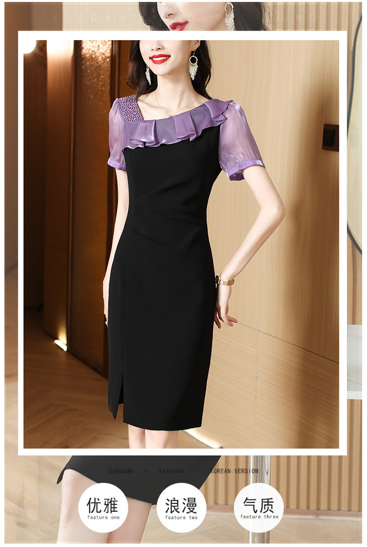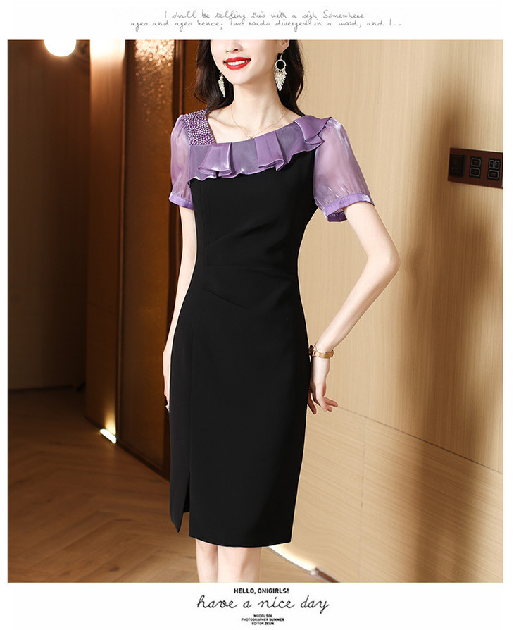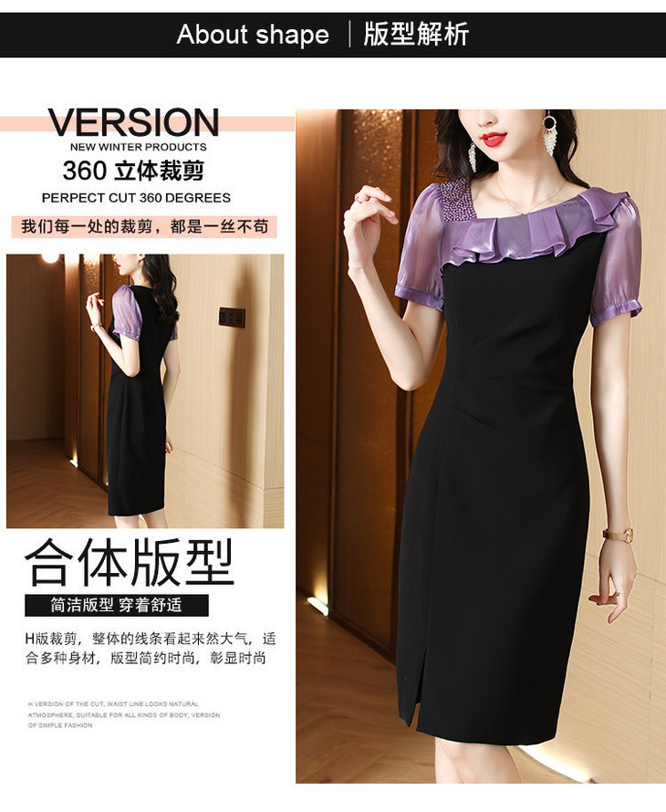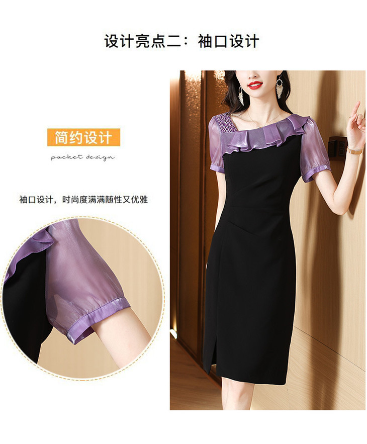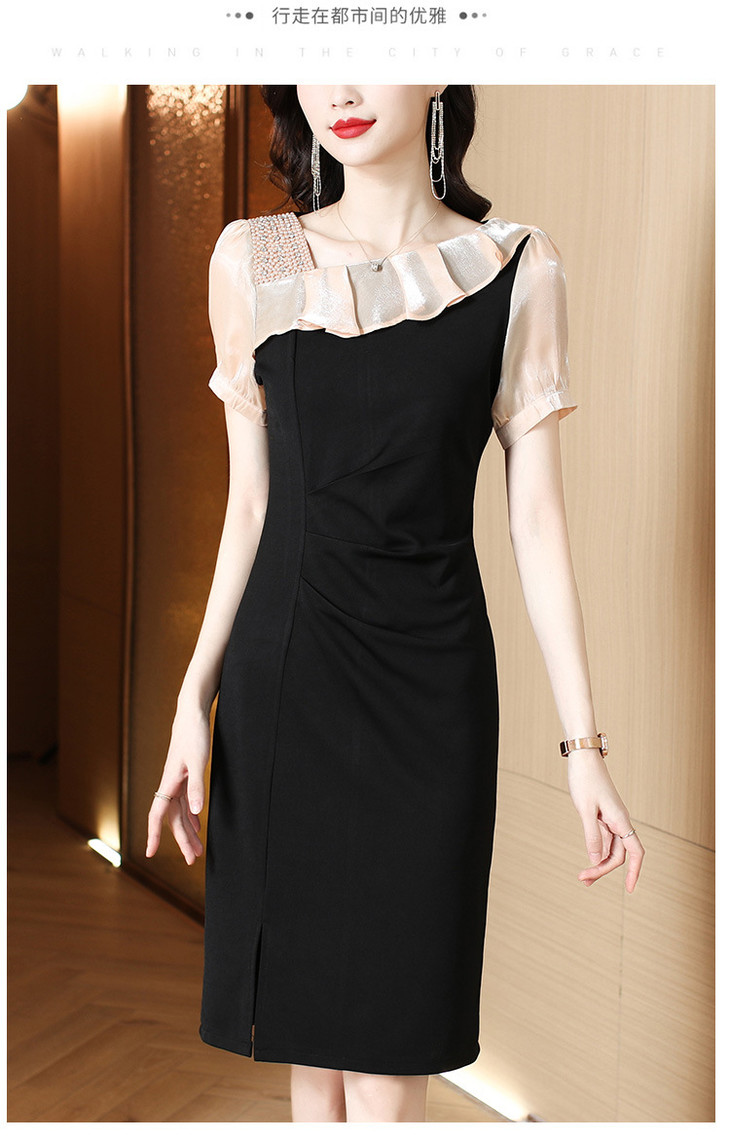 小众气质,短袖夏装高级感设计感斜领开叉包臀裙法式连衣裙HT-YX8525