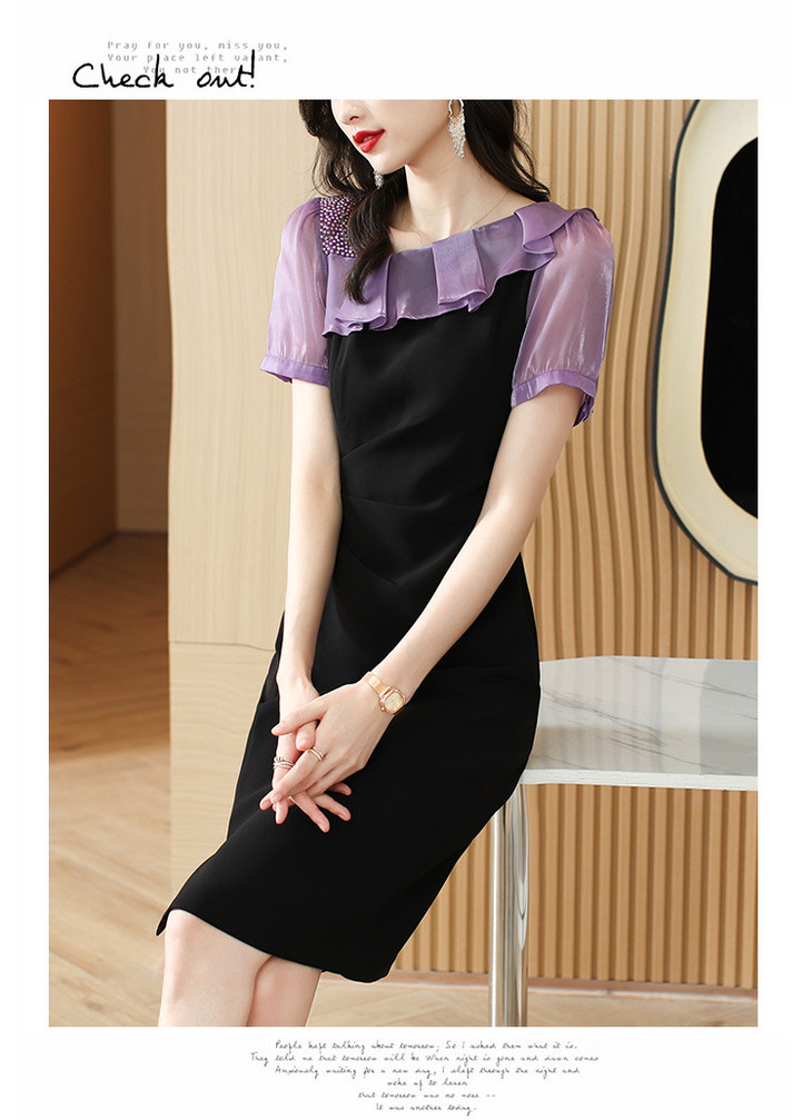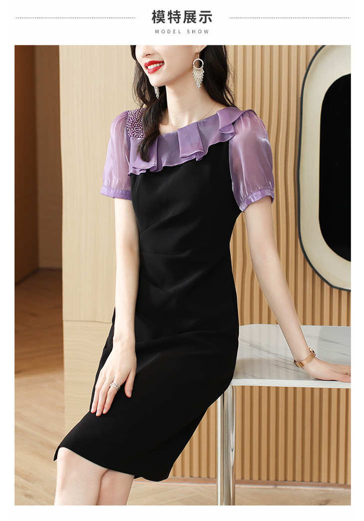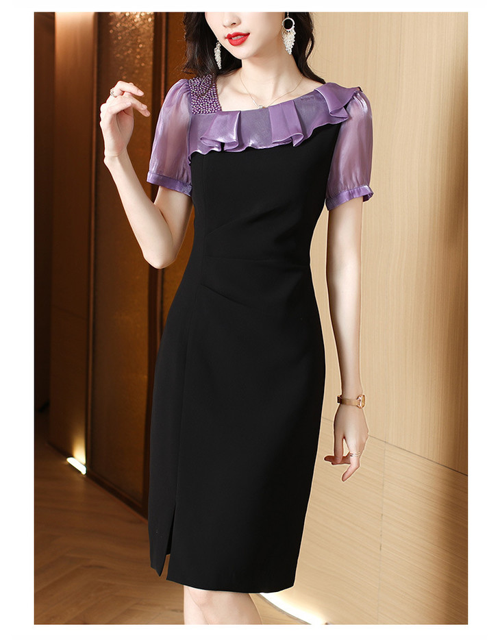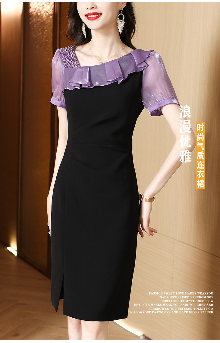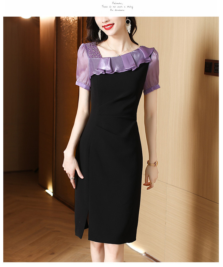 小众气质,短袖夏装高级感设计感斜领开叉包臀裙法式连衣裙HT-YX8525