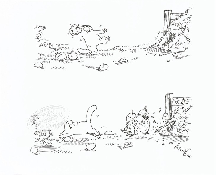 《西蒙的猫》黑白画面,简单的线条,清楚而有趣地刻画了一只神态活现喜欢恶作剧的猫。如果说短片具有特效的视觉空间,那么图书将给人更细腻的想象空间,整本书里没有任何文字,所有的喜怒哀乐都融在简约的绘画之中,可见作者非凡的绘画天赋和敏感的性情,值得细细品味。