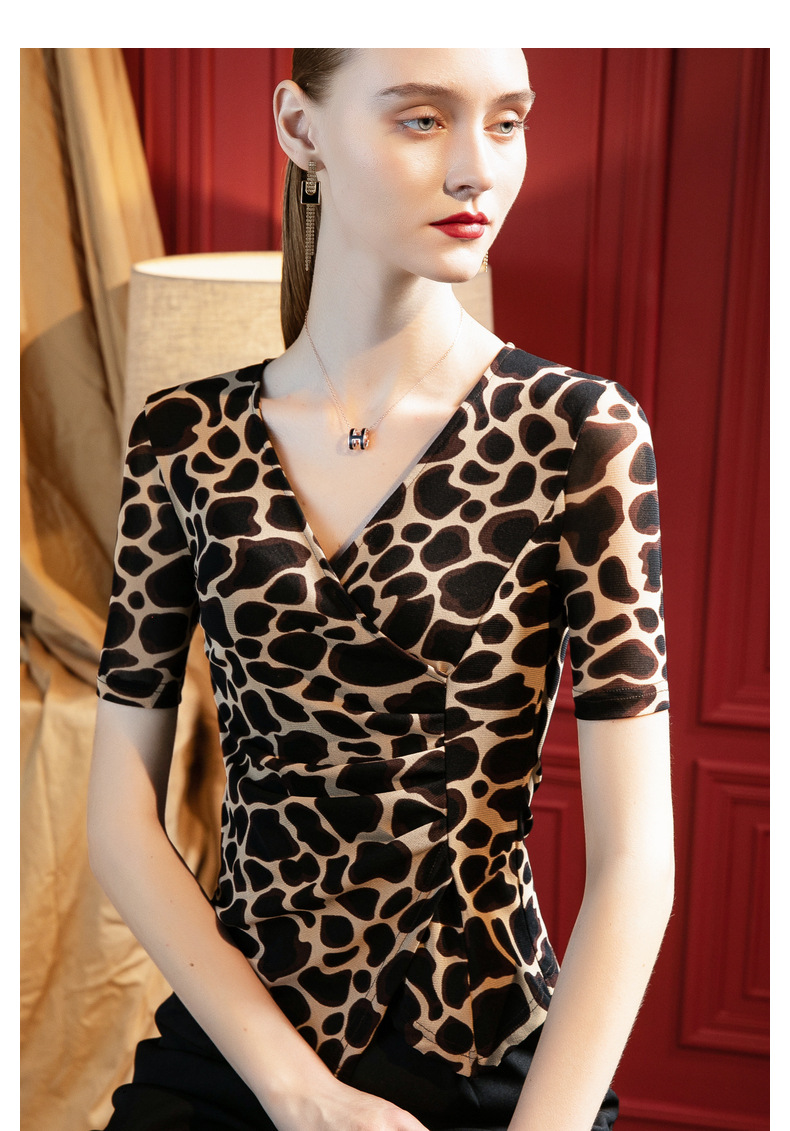 时尚洋气,T恤短袖冰丝网纱V领时髦上档次小衫SG-JMXT2X2485