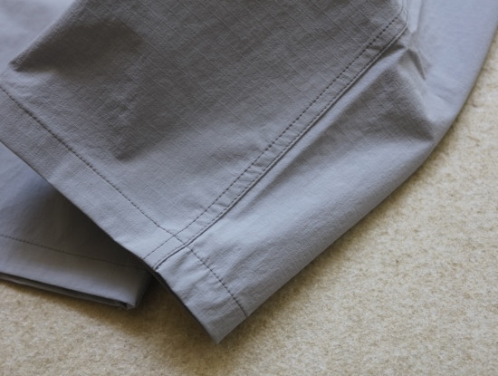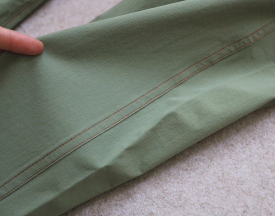 两侧斜插式口袋 上下都有加固缝线 右后单屁兜 白色小按扣
