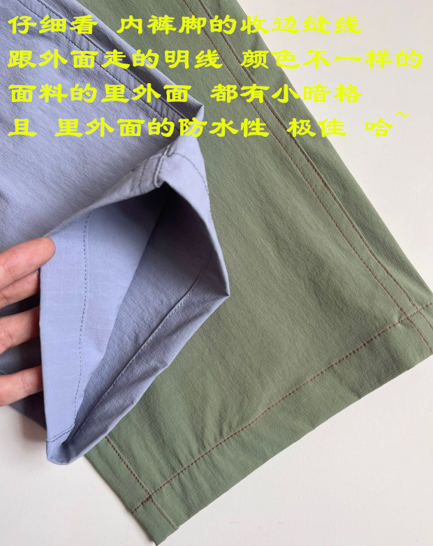里外面 防水性极佳 四面微弹 不是怒大弹力的那种 蹲起高抬腿 都没问题