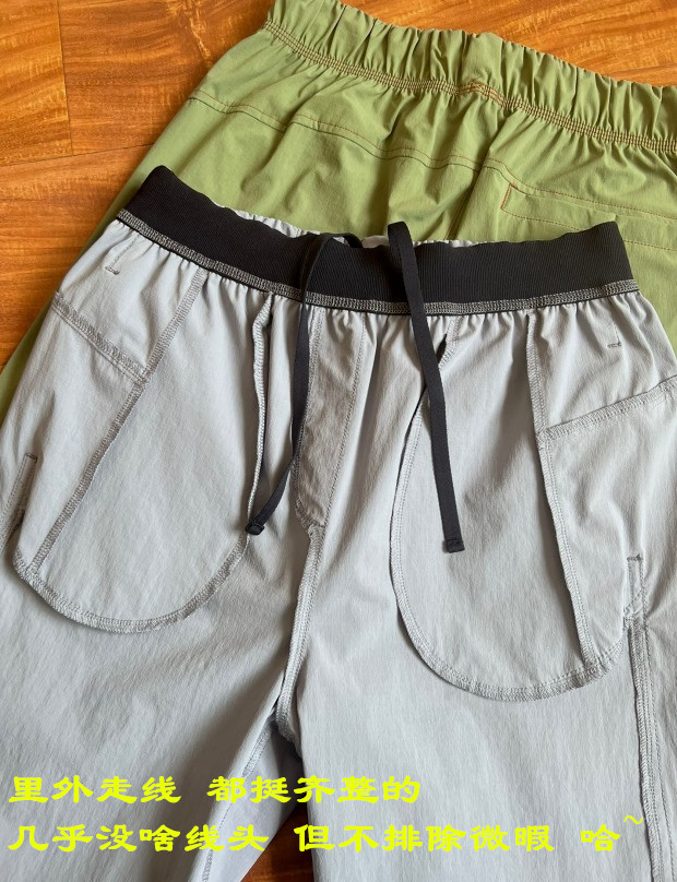 腰间有弹力 外有抽绳 里面腰头这圈 还做了弹力螺纹棉的包边 三针五线的
