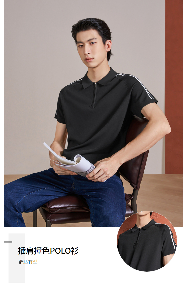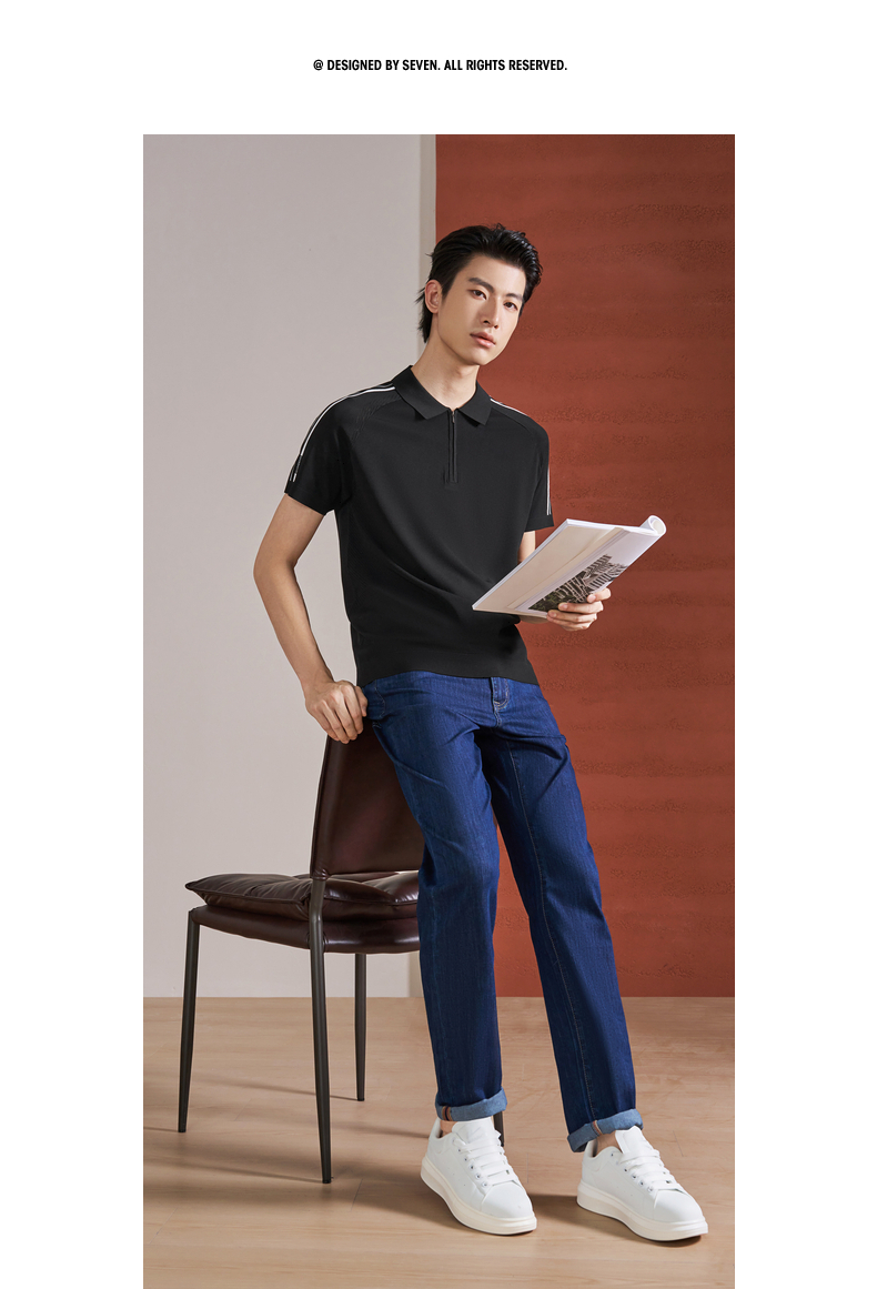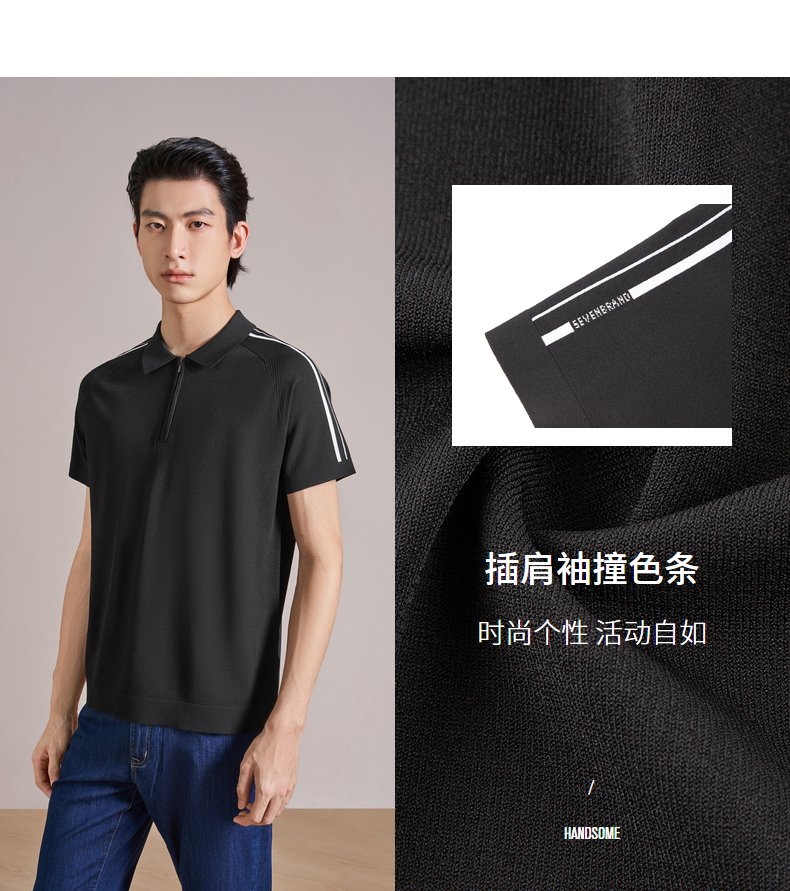 【伊力特/条纹提花】柒牌男装26夏上新短袖POLO衫舒适商务上衣男 130T70850