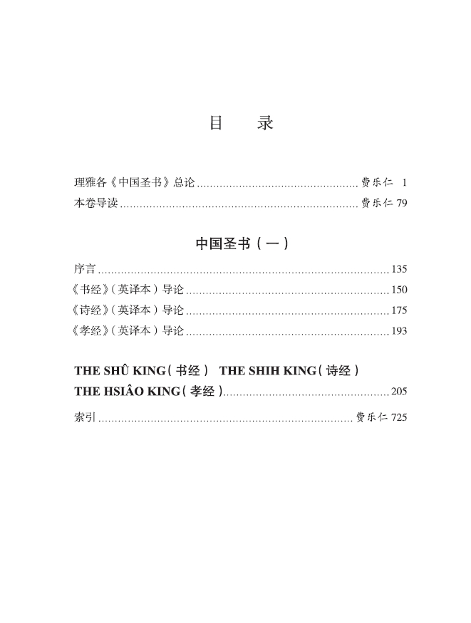 《理雅各文集》第1卷辑录了由理雅各译注的《中国圣书(一)》,包括《书经》《诗经》《孝经》,并将序言、导论译成中文,辅以费乐仁(Lauren F.Pfister)所撰导读。
