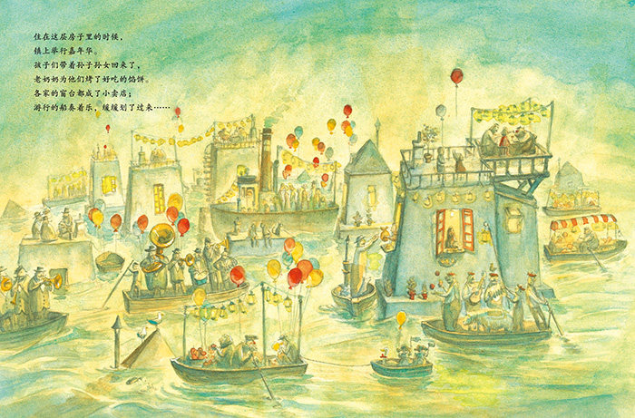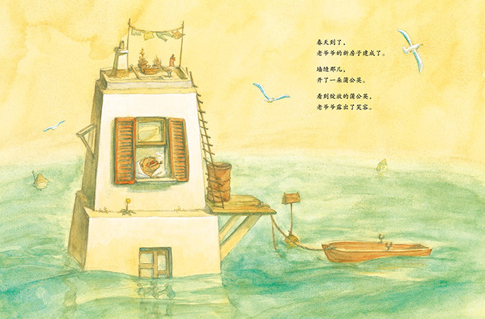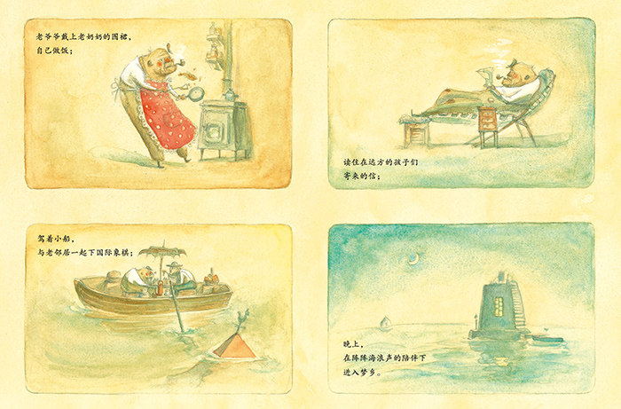 书中温暖的画面和故事,非常吸引孩子,也会让大人深有感触。孩子们为这些立在海里的、像是用一块块积木搭起来的房子啧啧称赞;大人们则随着老爷爷的回忆而思绪起伏,感慨万千。