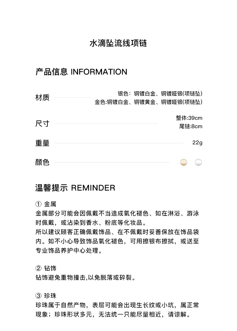 lost in echo原创设计师款轻奢百搭高级感水滴坠流线项链配饰吊坠