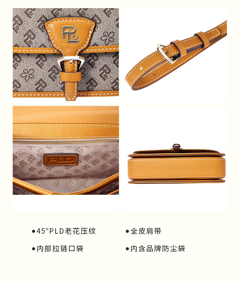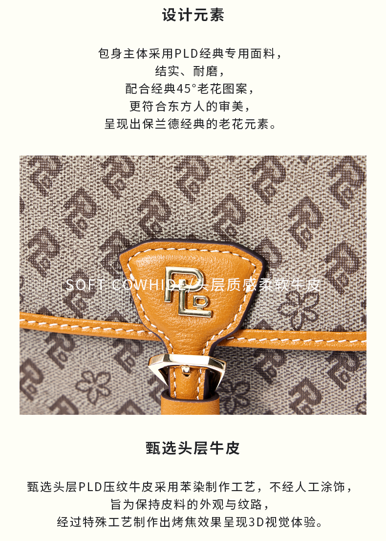 保兰德PLD东方雅奢45度老花经典系列头层牛皮风琴包斜挎手提包通勤必备女包