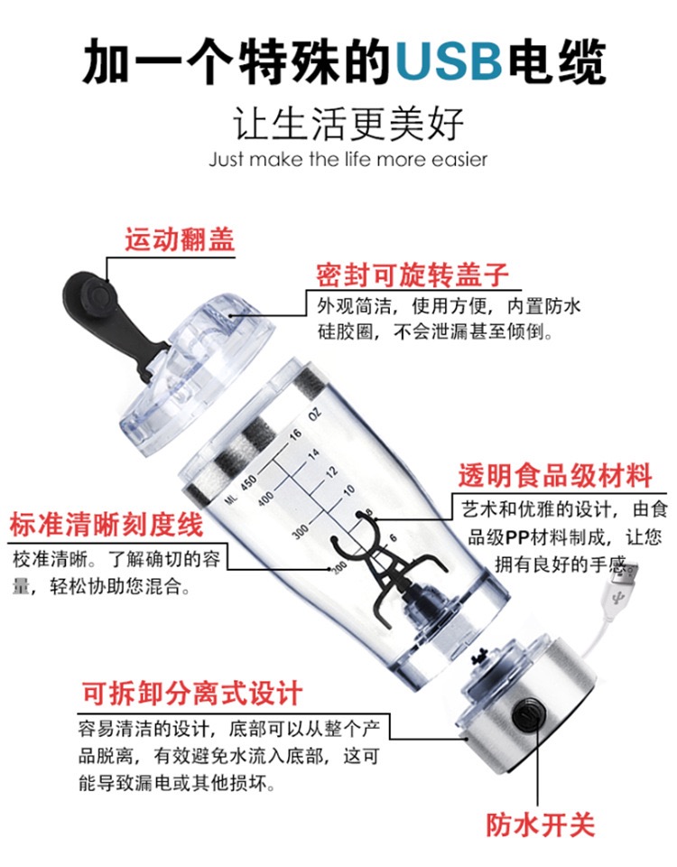 道生生 USB无线充电搅拌杯 出口欧美品质认证400ml