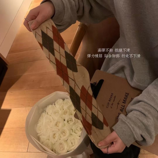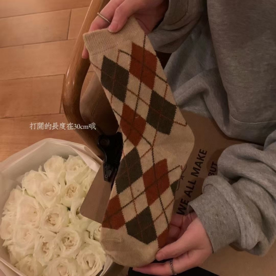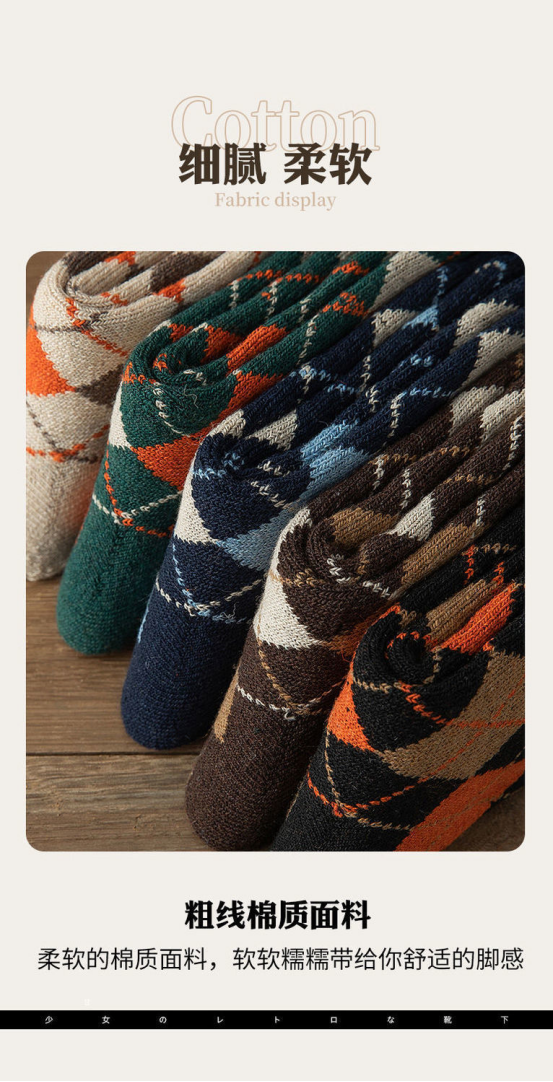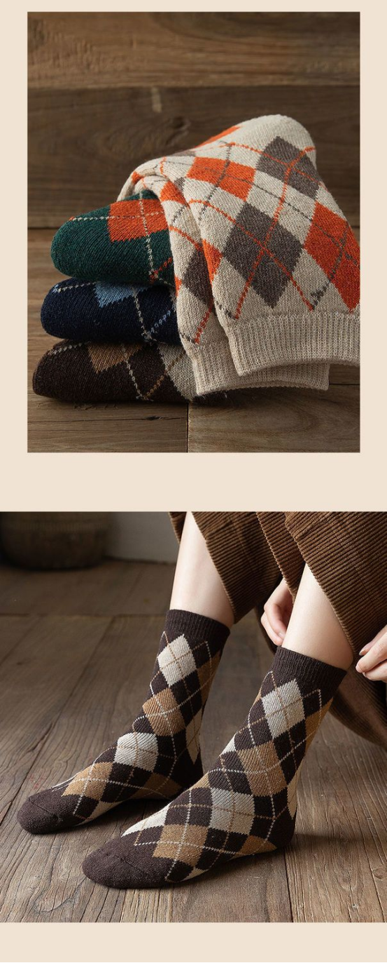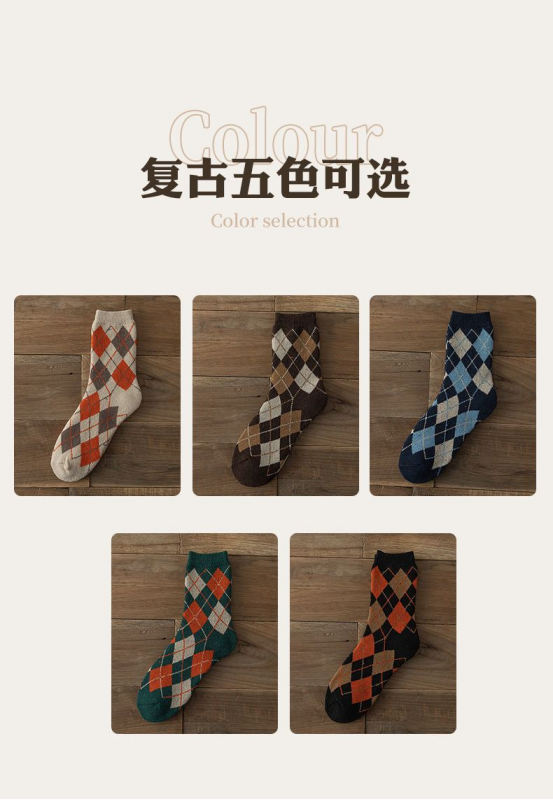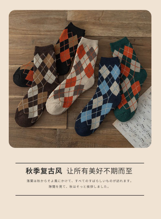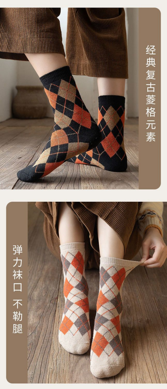 🚴清仓福利!【5双装英伦风复古菱格袜】🔻1.网红搭配博主,♥️时尚达人都推荐的菱格形袜子一组五个颜色,🌟每个颜色一双冬天真的超级好搭配!