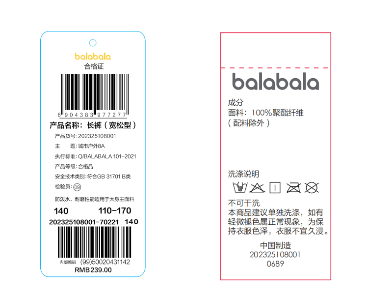 巴拉巴拉童装女童长裤儿童裤子2025新款秋防泼水耐磨