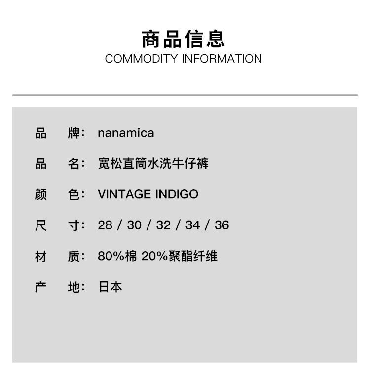 nanamica Selvage Denim Pants 复古宽松直筒水洗牛仔裤