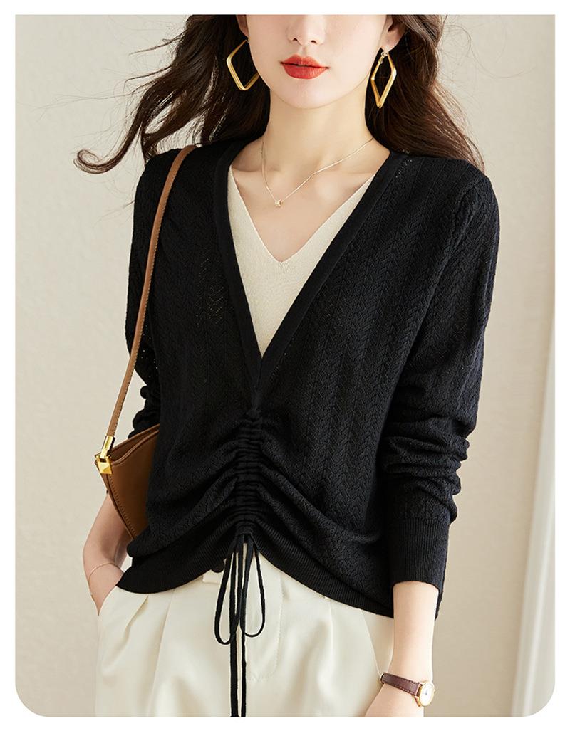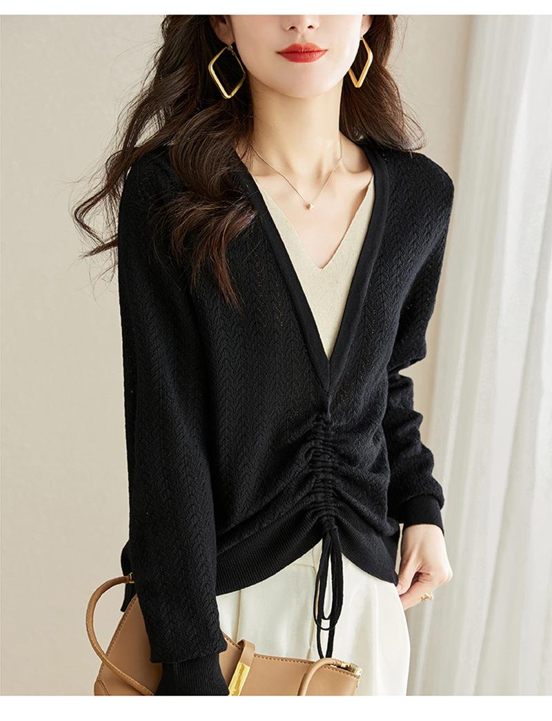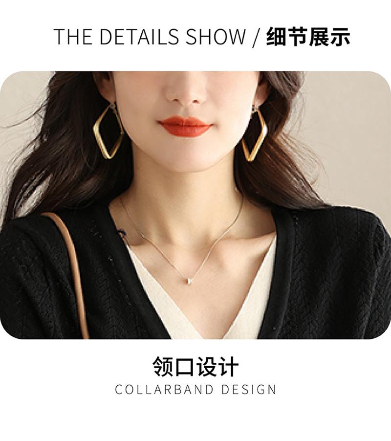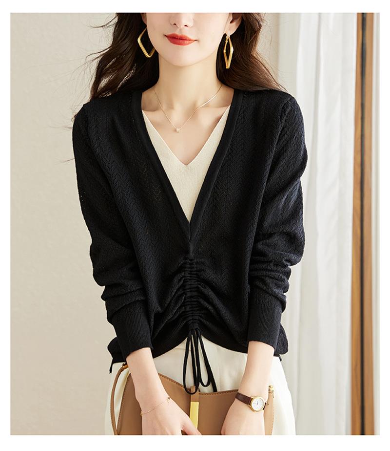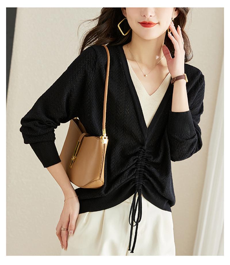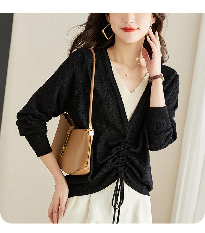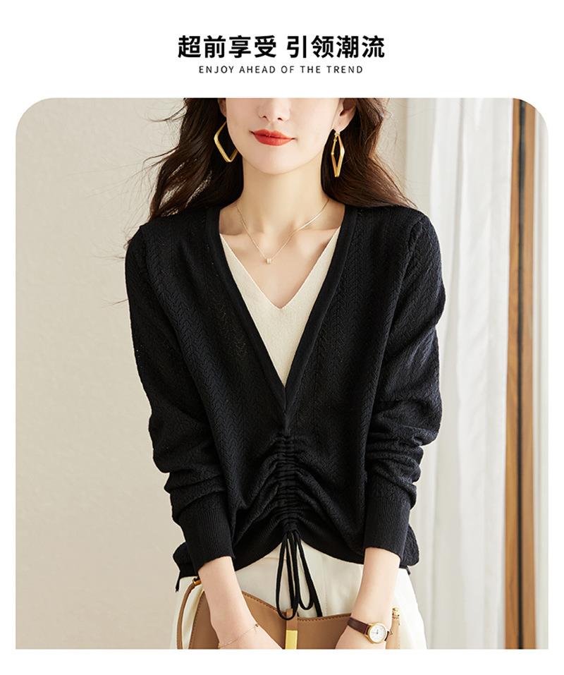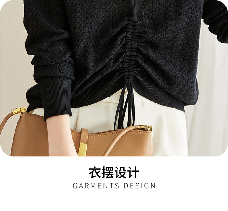 针织衫女长袖春秋新款洋气小衫薄款设计感镂空假两件v领上衣