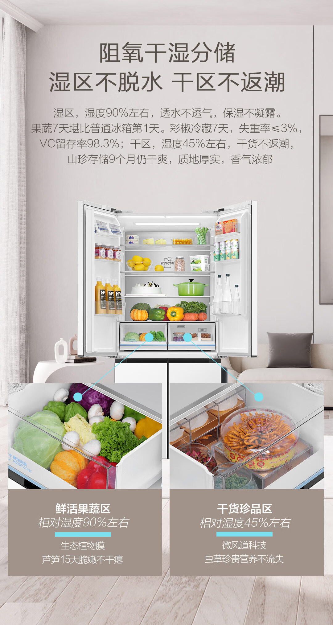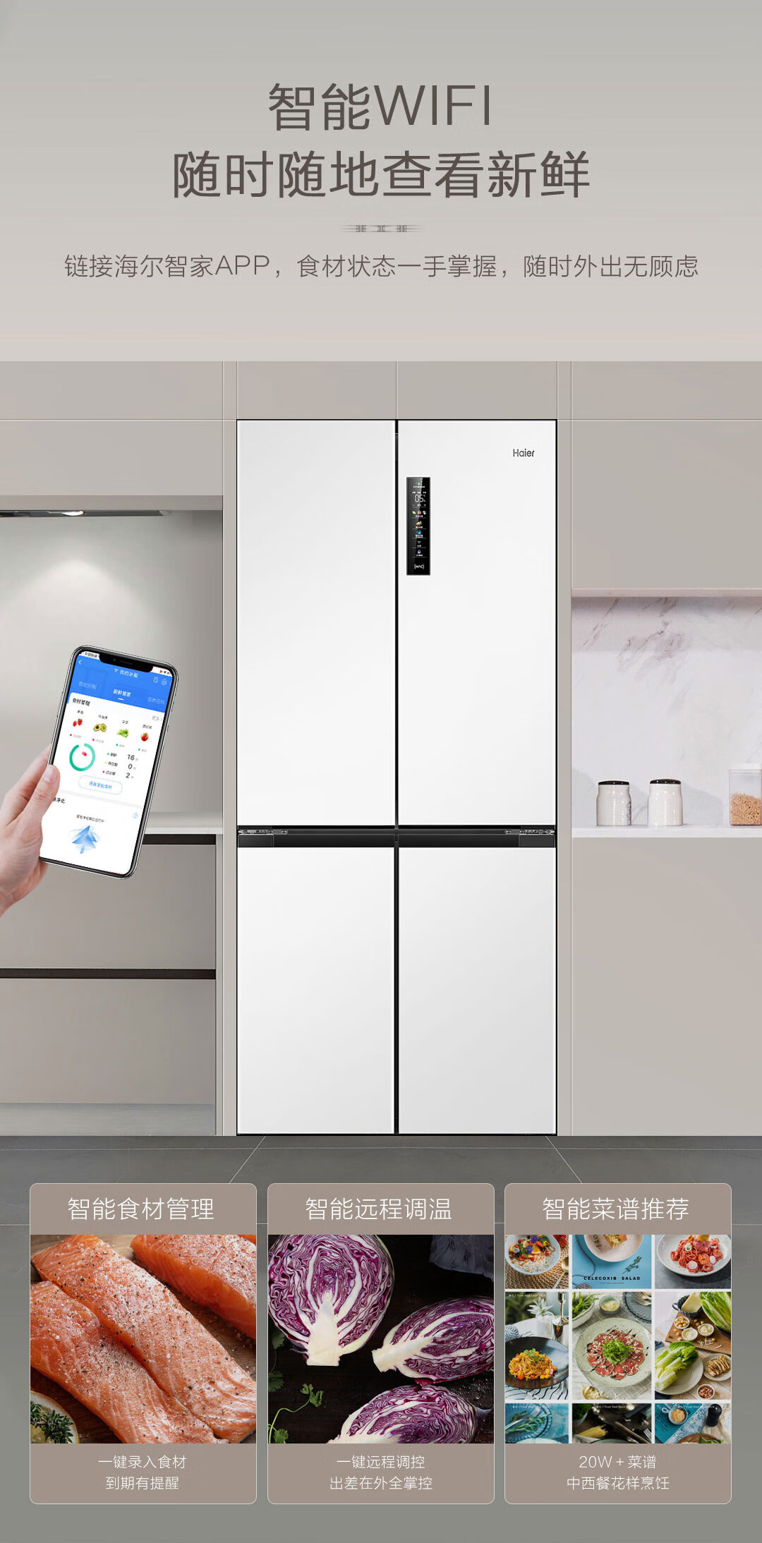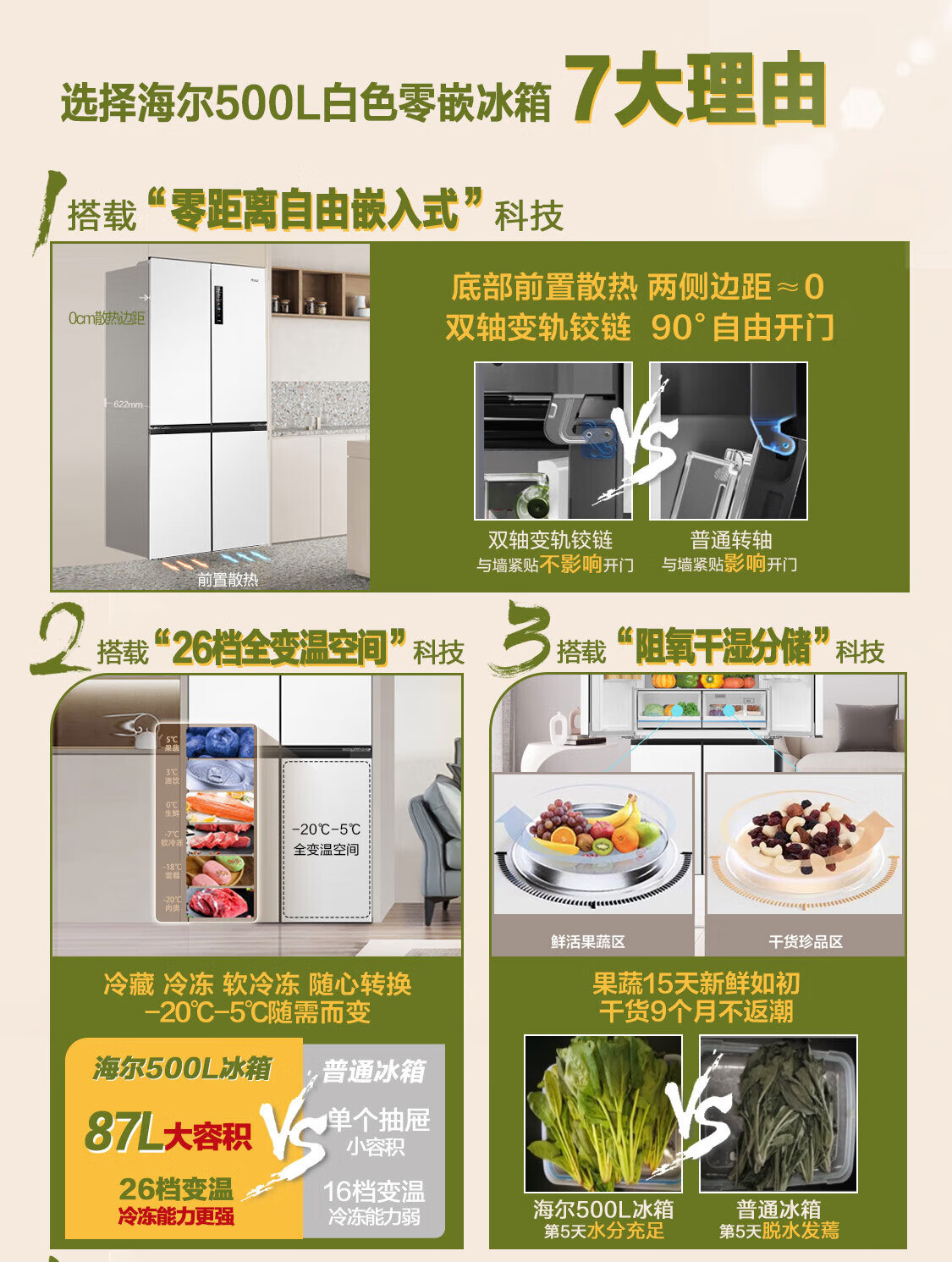 海尔(Haier)500升零距离自由嵌入式白色一级能效除菌变温超薄母婴四开十字双开门家用冰箱BCD-500WGHTD49W9U1