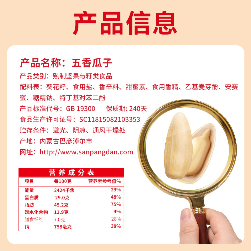 【仅剩10份】三胖蛋五香味葵花籽袋装480g-(效期至26年7月23日)