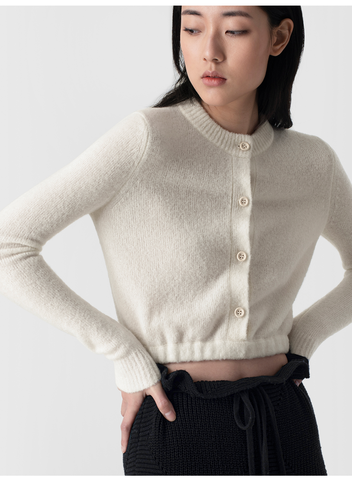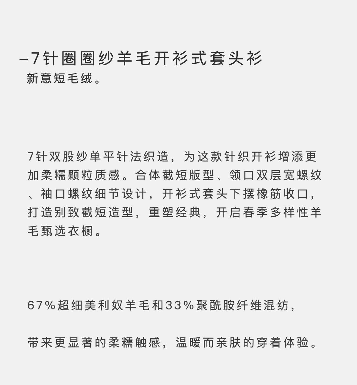 322工房新意短毛绒圈圈纱羊毛套头衫2023春夏款截短针织开衫B010