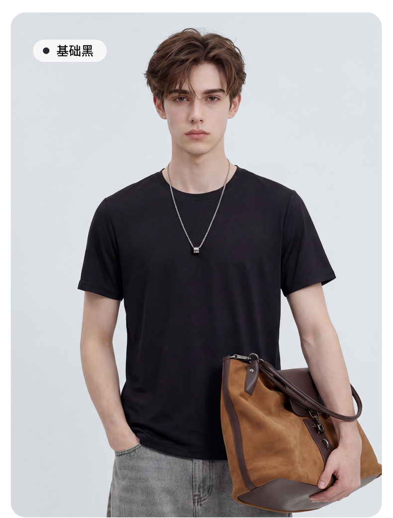 【速干&7A级抗菌&抗起球】圣得西2026年春季圆领纯色短袖男t恤