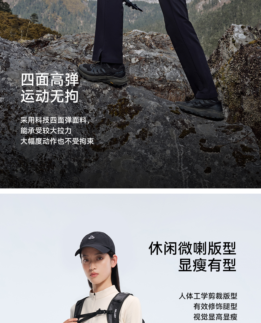 伯希和户外软壳裤女新款防风徒步运动长裤弹力休闲裤商务微喇裤子