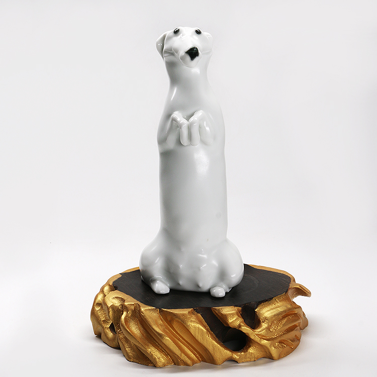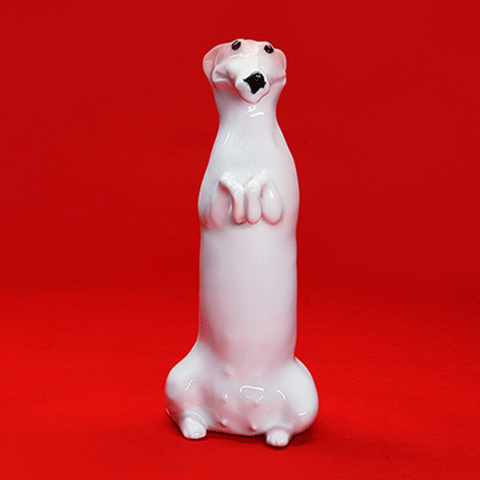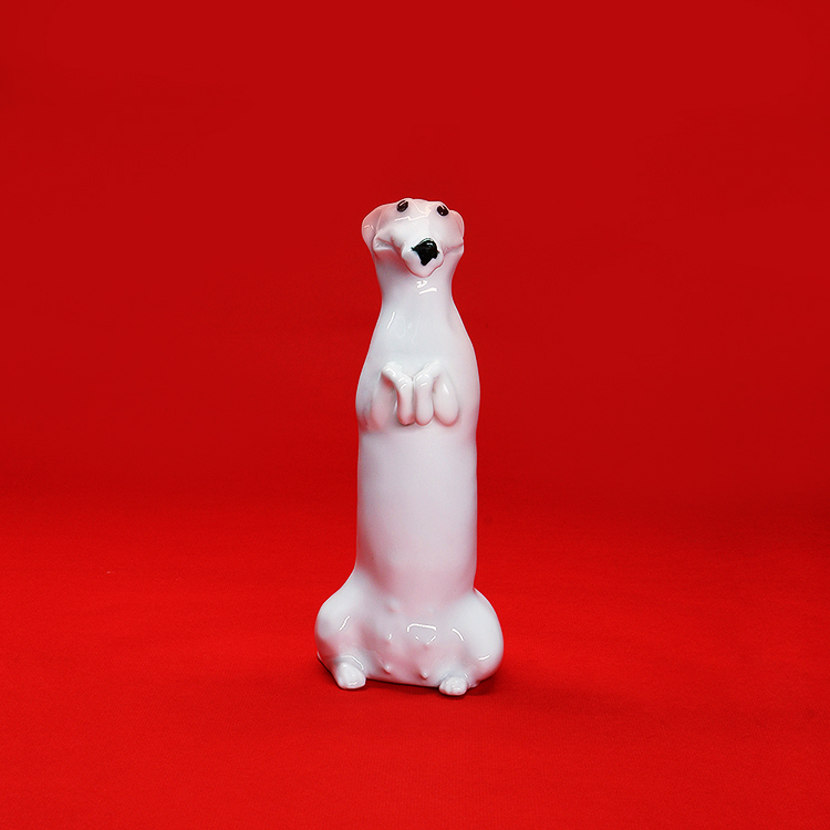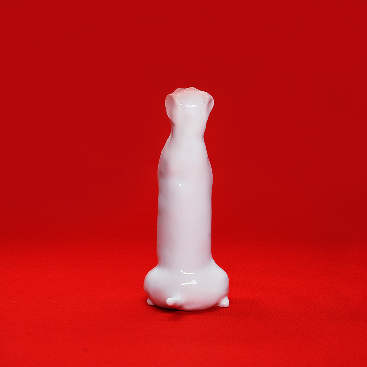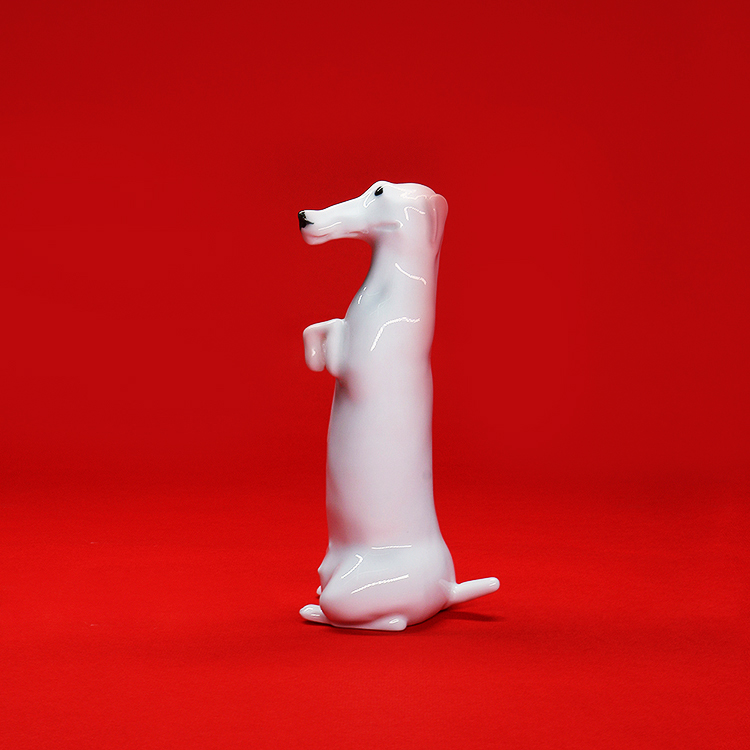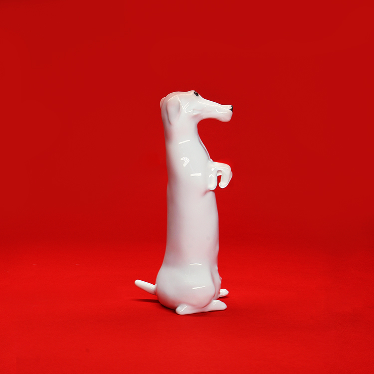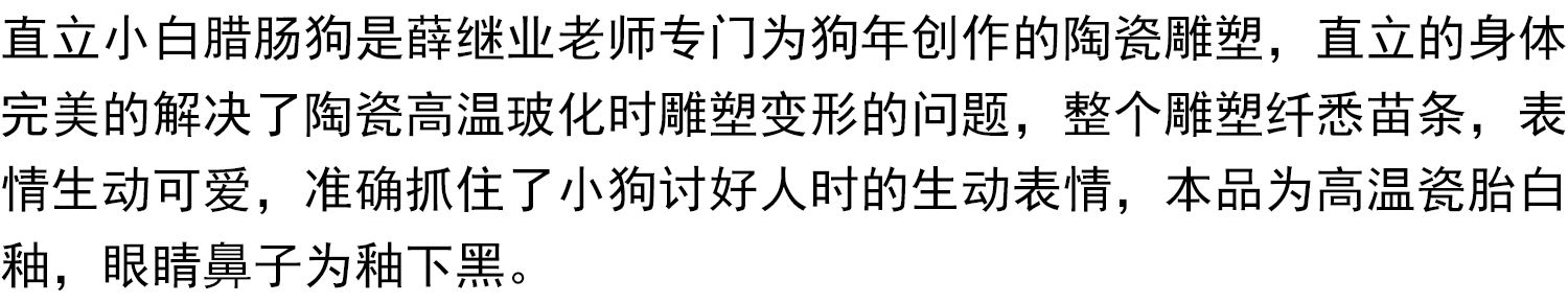 薛继业雕塑小白腊肠狗瓷胎釉下黑点眼鼻白釉