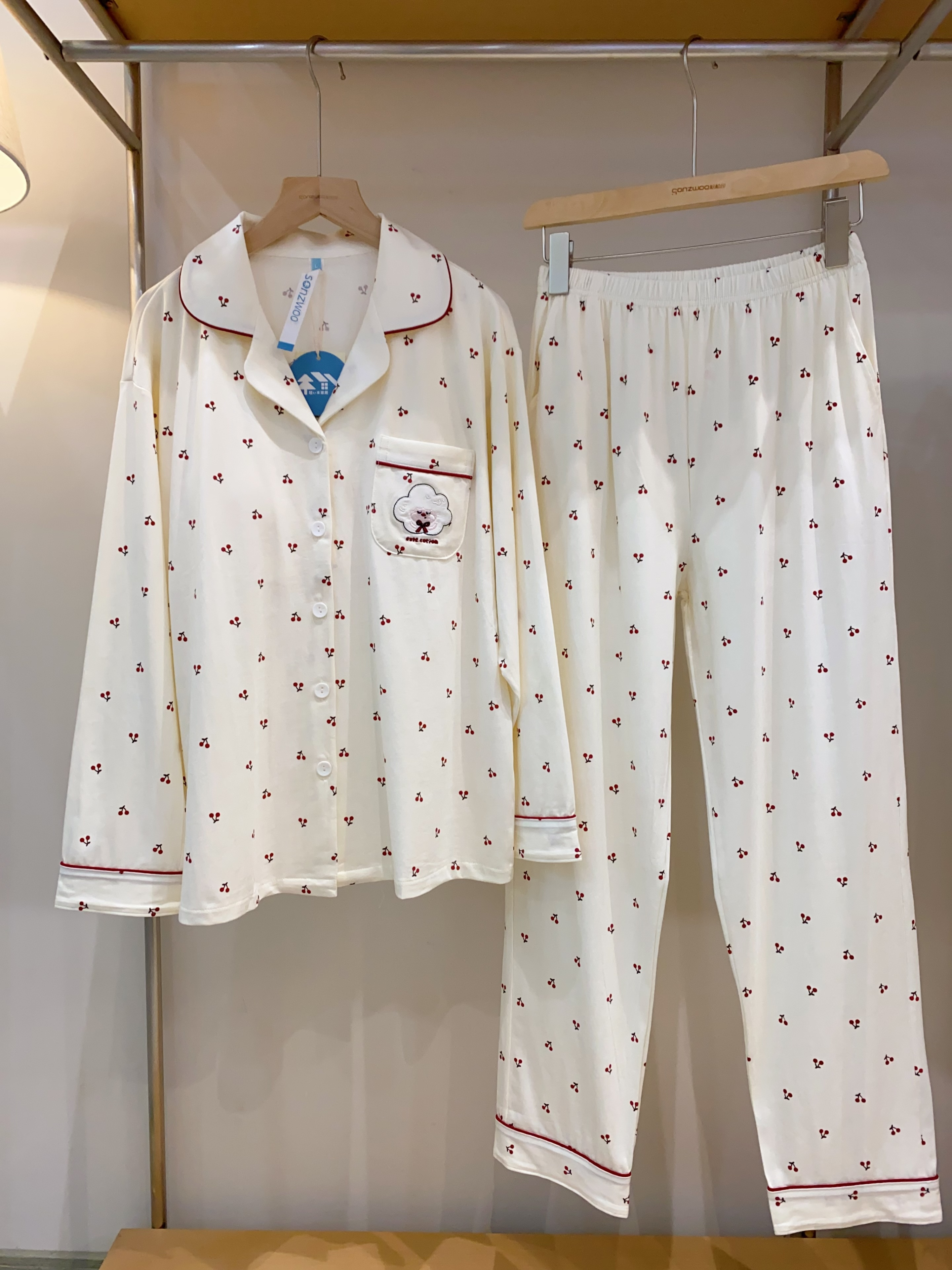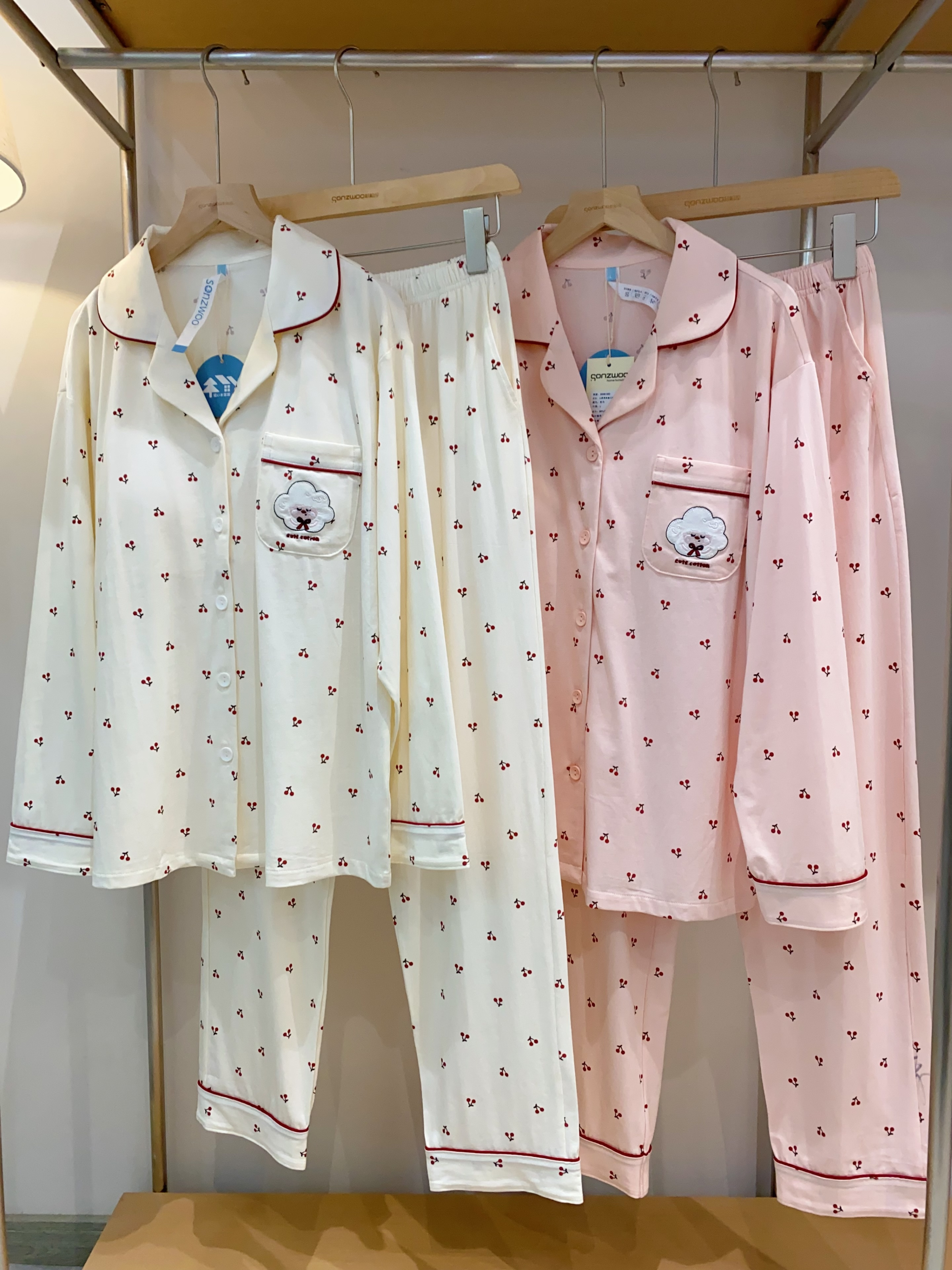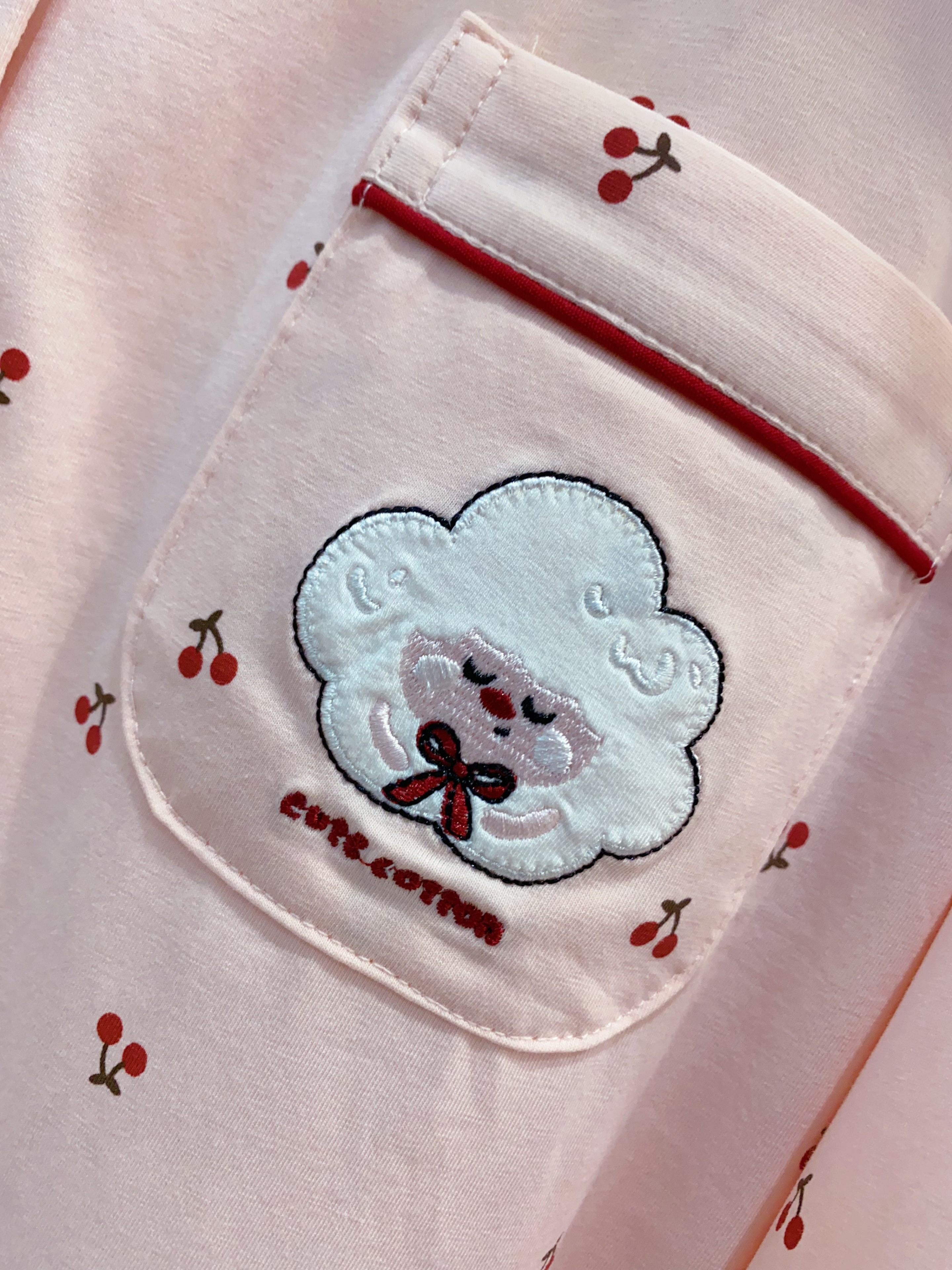 自带胸垫,不用穿内衣,保留莫代尔的丝滑,兼顾棉的透气亲肤, 樱桃印花🍒+奶油色系,居家满分💯