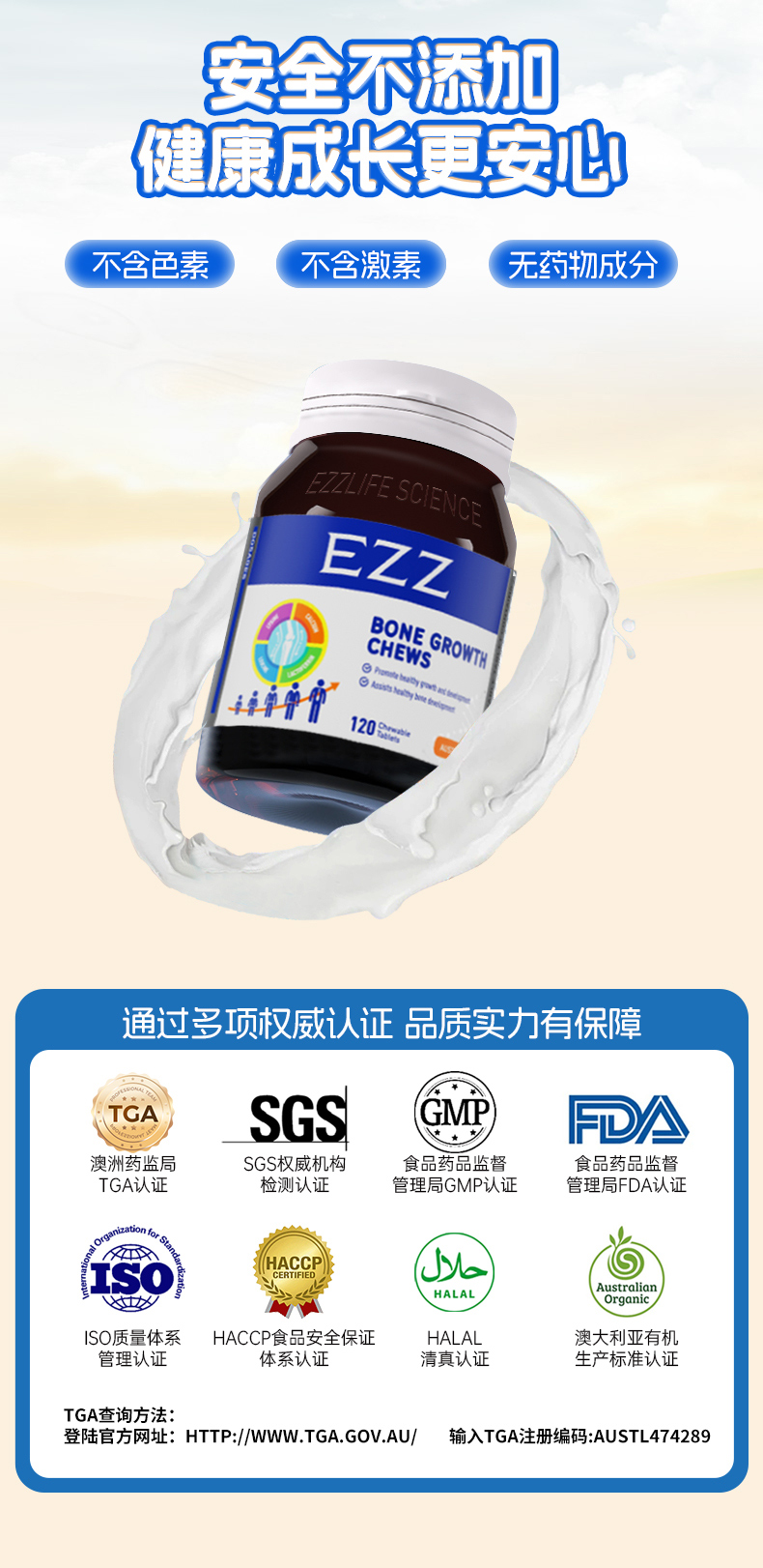【3.0升级版】EZZ 赖氨酸成长丸钙镁锌成长科技儿童青少年学生 YS【2603补钙专场】