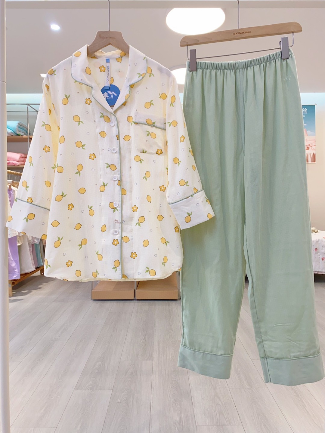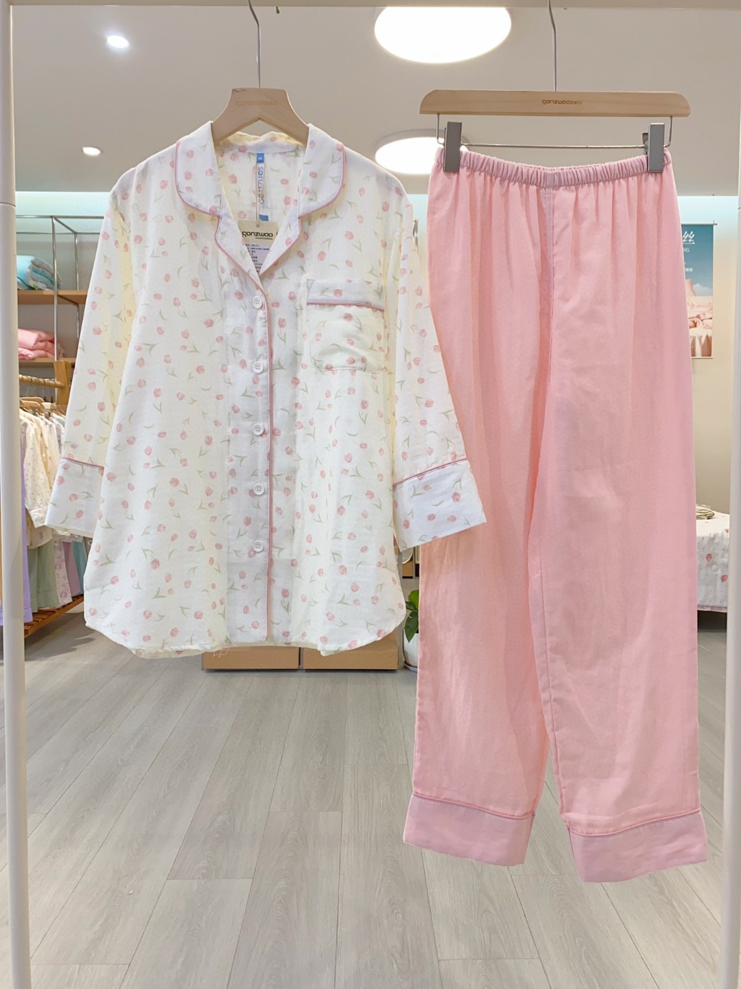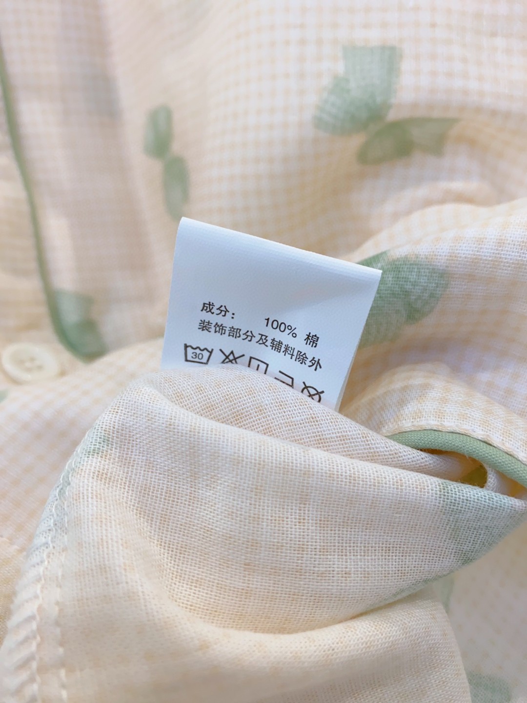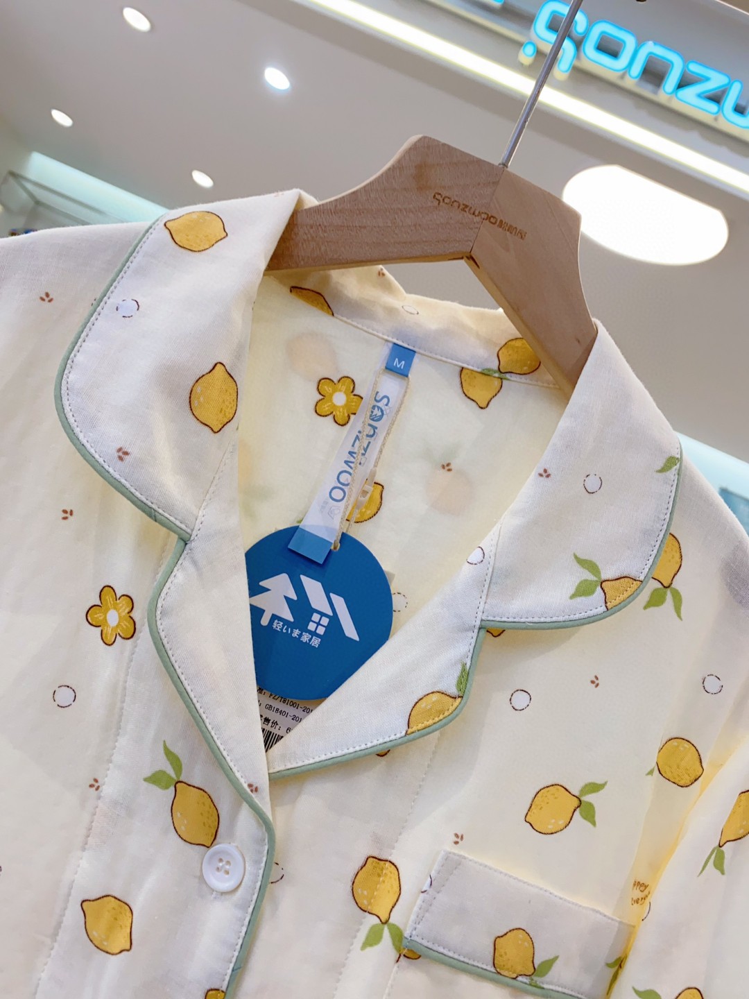 松植屋女款纱布清新田园七分袖长裤套装100% 纯棉纱布面料 柔软吸汗透气-