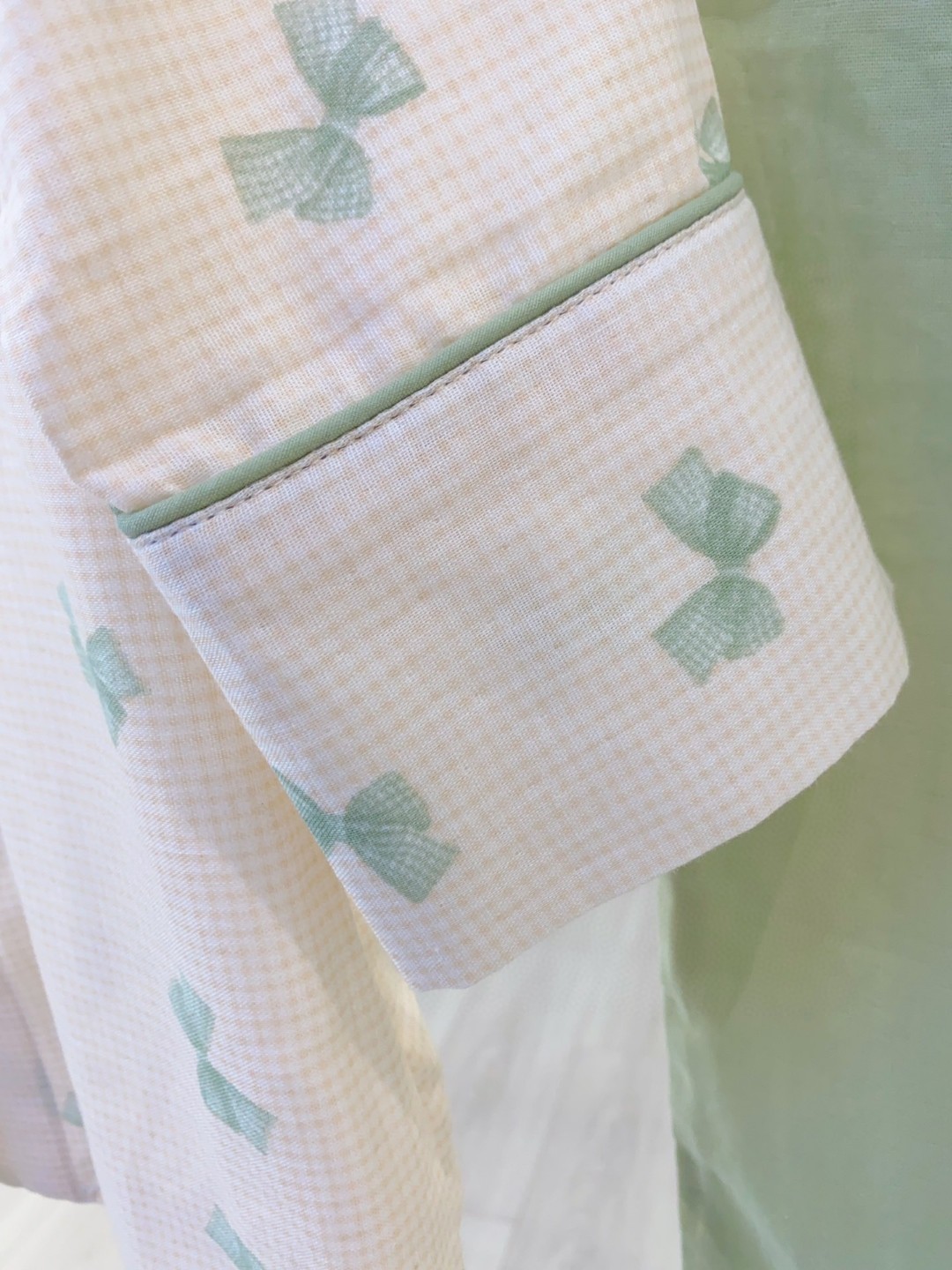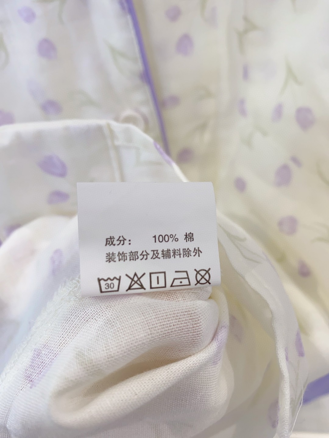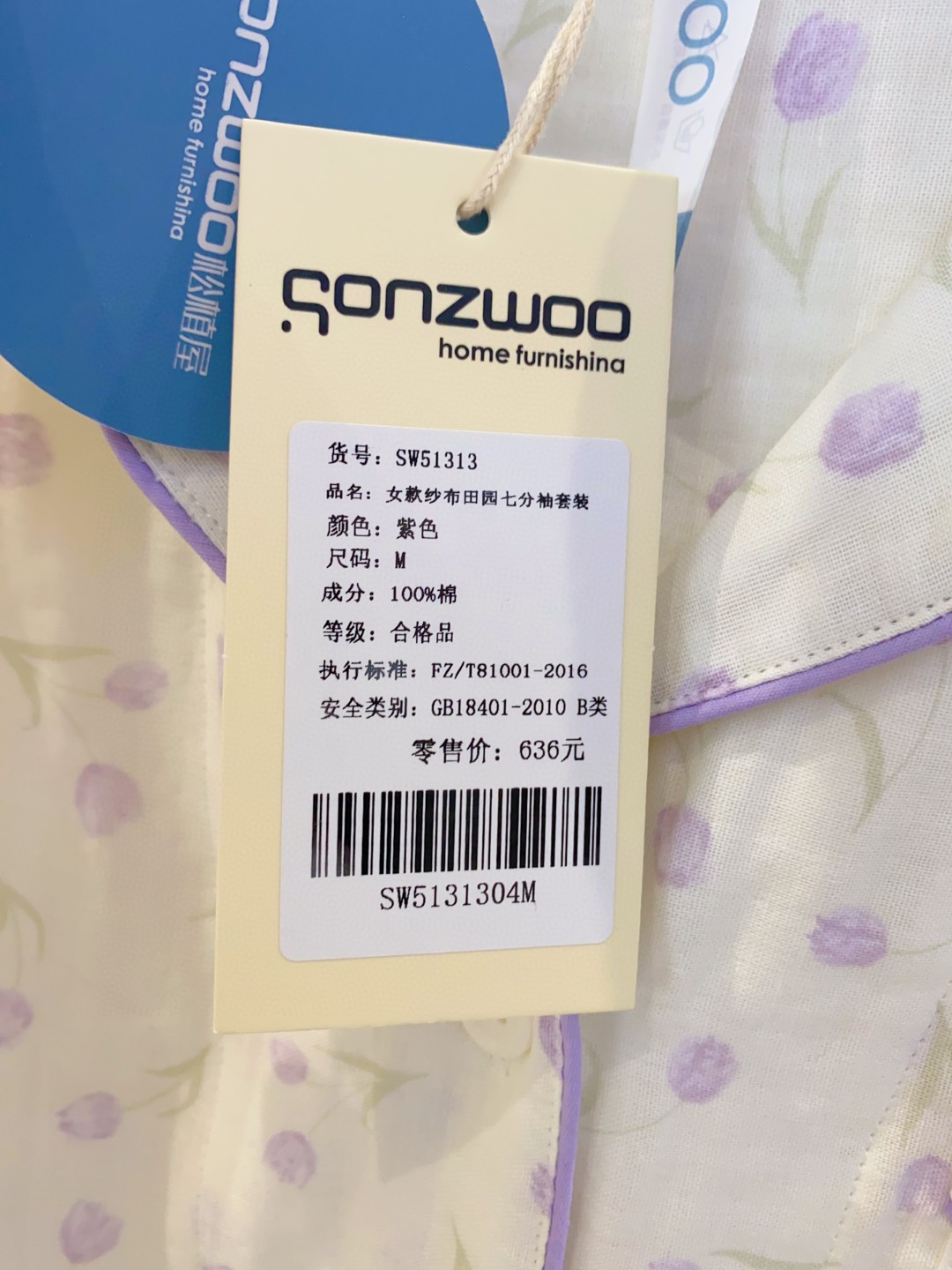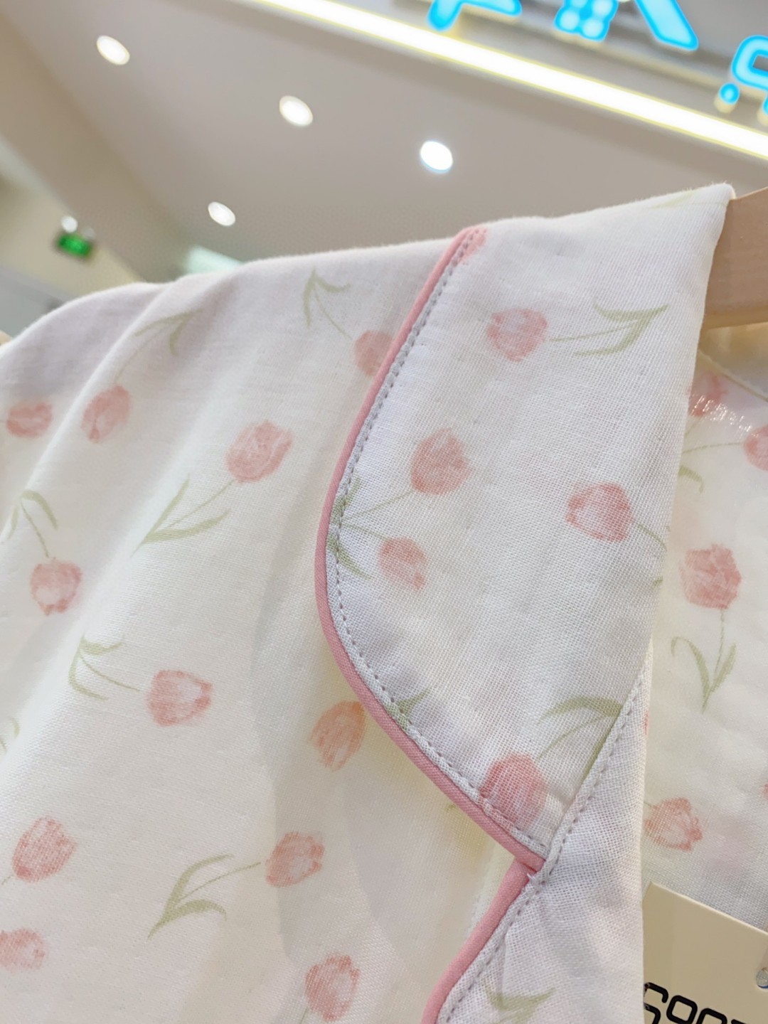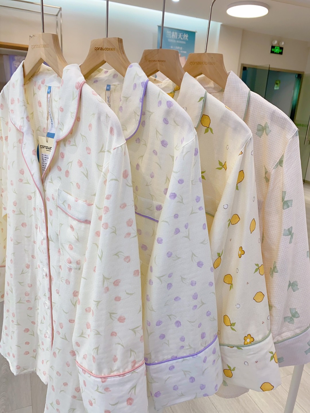 松植屋女款纱布清新田园七分袖长裤套装100% 纯棉纱布面料 柔软吸汗透气-
