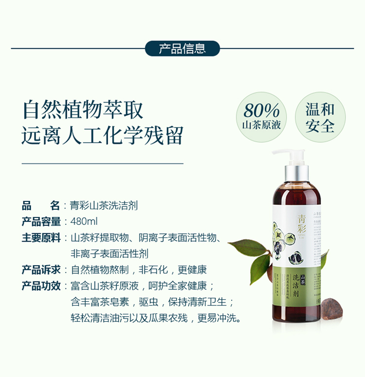 青彩山茶洗洁剂3瓶装 山茶籽植物皂低泡洗碗洗蔬果液驱蟑螂洗洁精