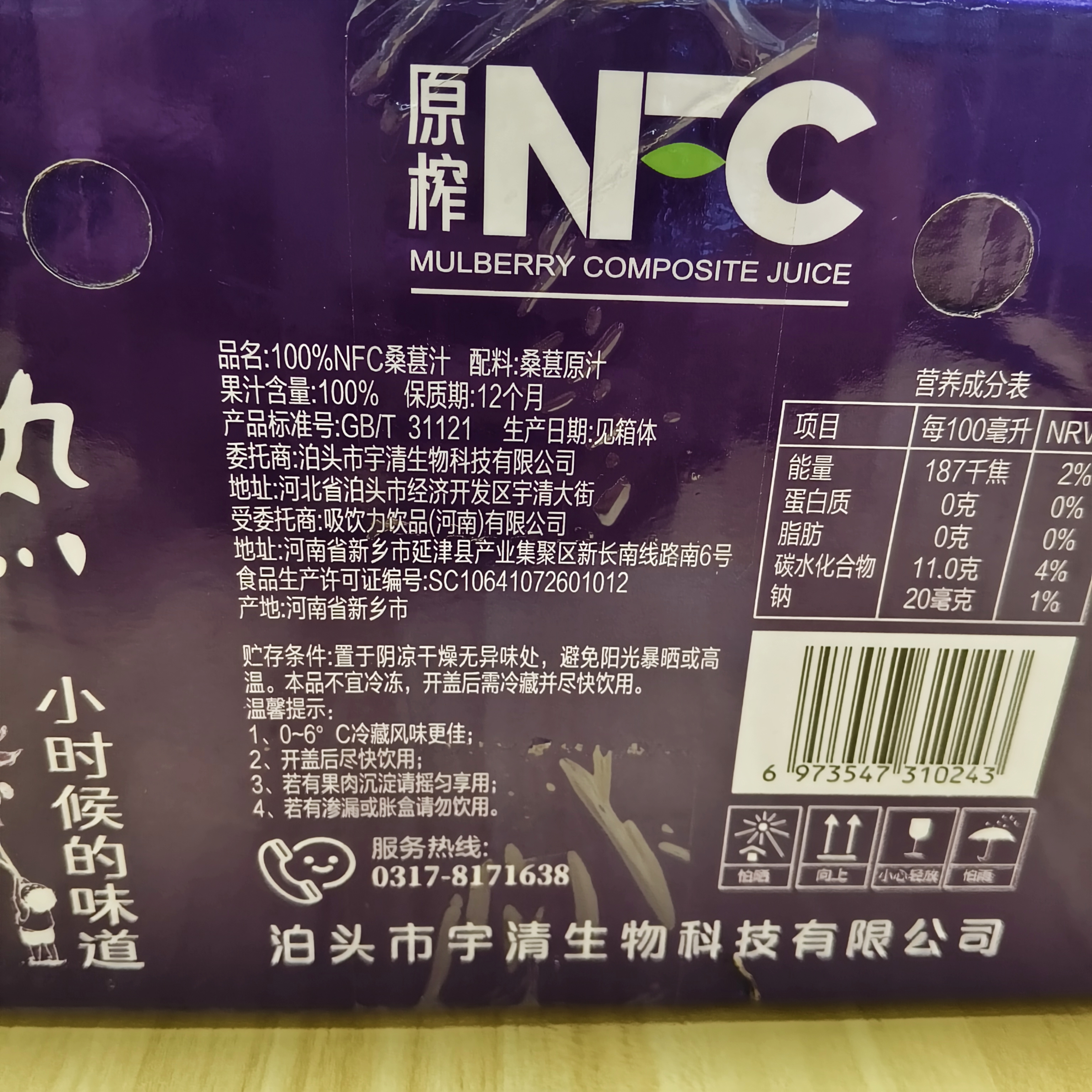 有机桑葚汁 NFC纯桑葚汁 葚鲜果榨取,无任何添加 配料表:只有桑葚原汁