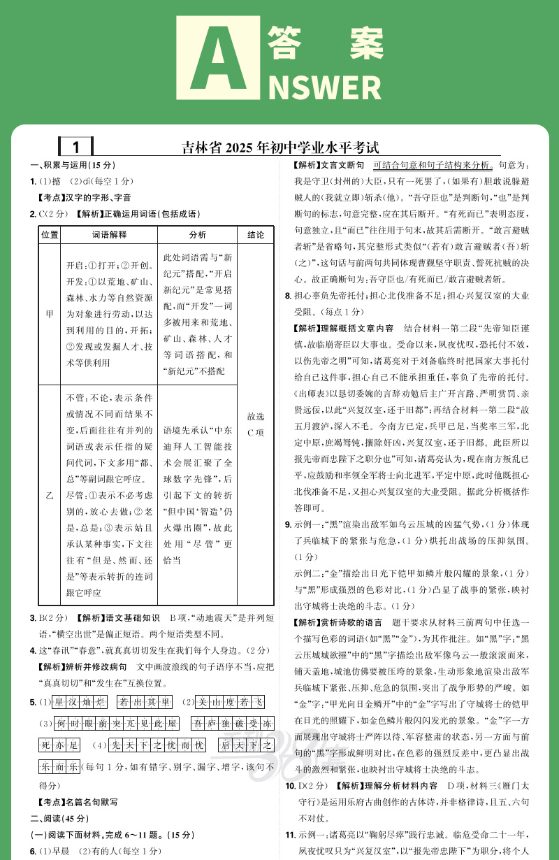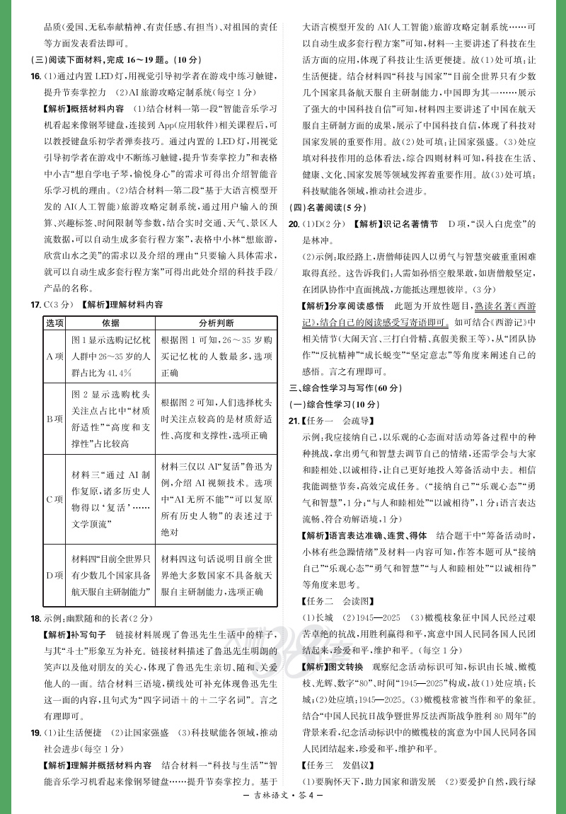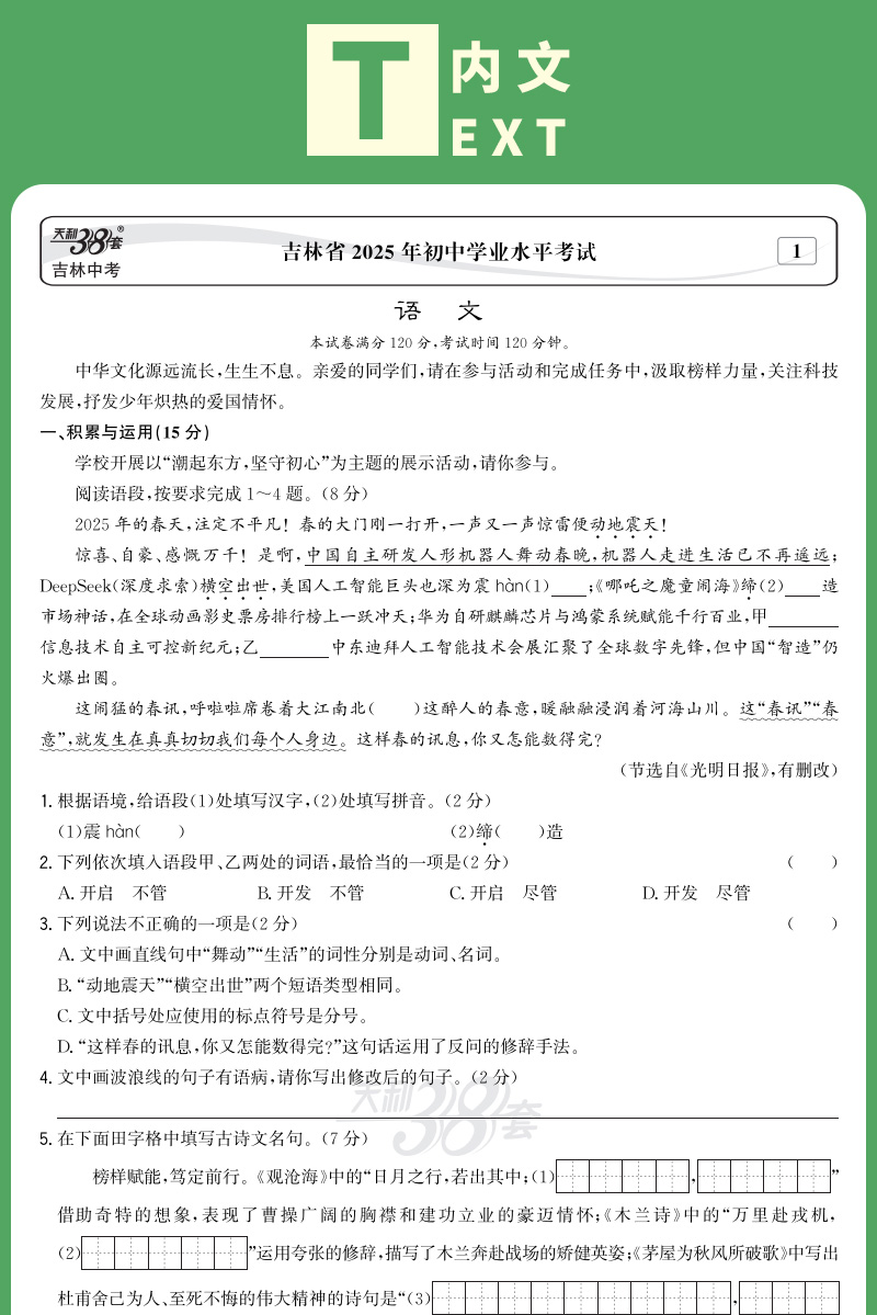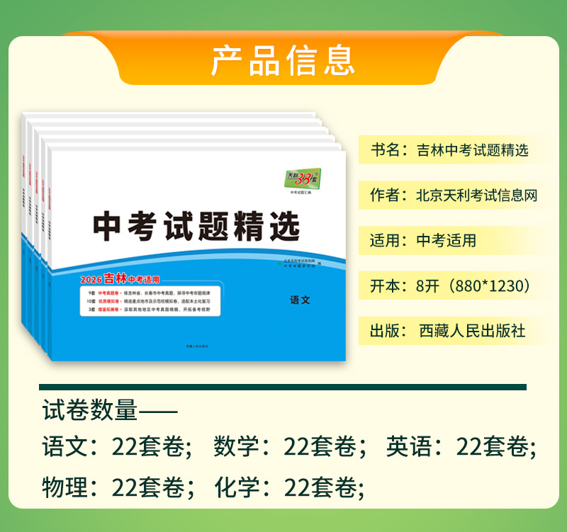 天利38套 2026吉林中考试题精选 语文 数学 物理 化学 生物 地理