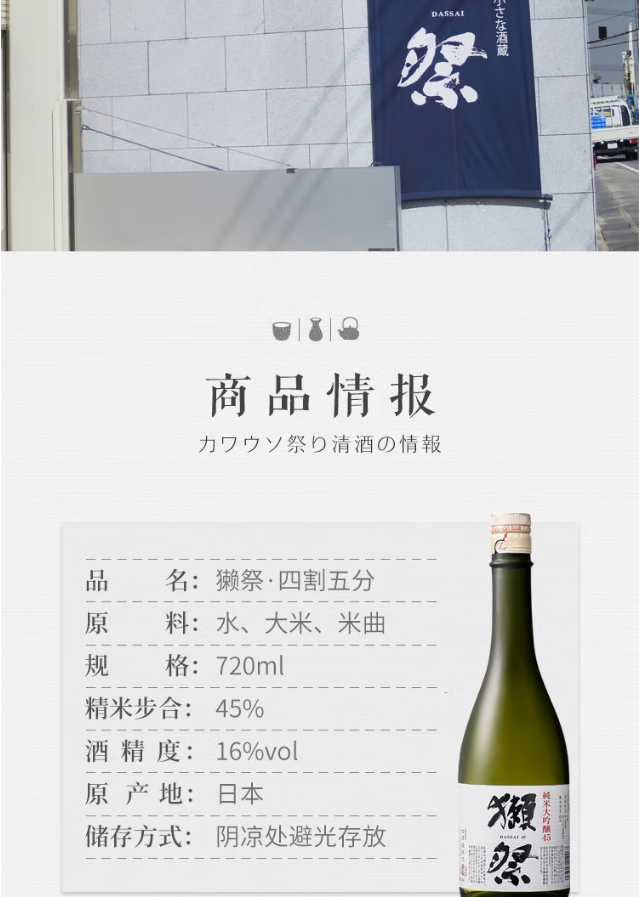 日本獭祭45 四割五分 纯米大吟酿清酒 720ml *1瓶