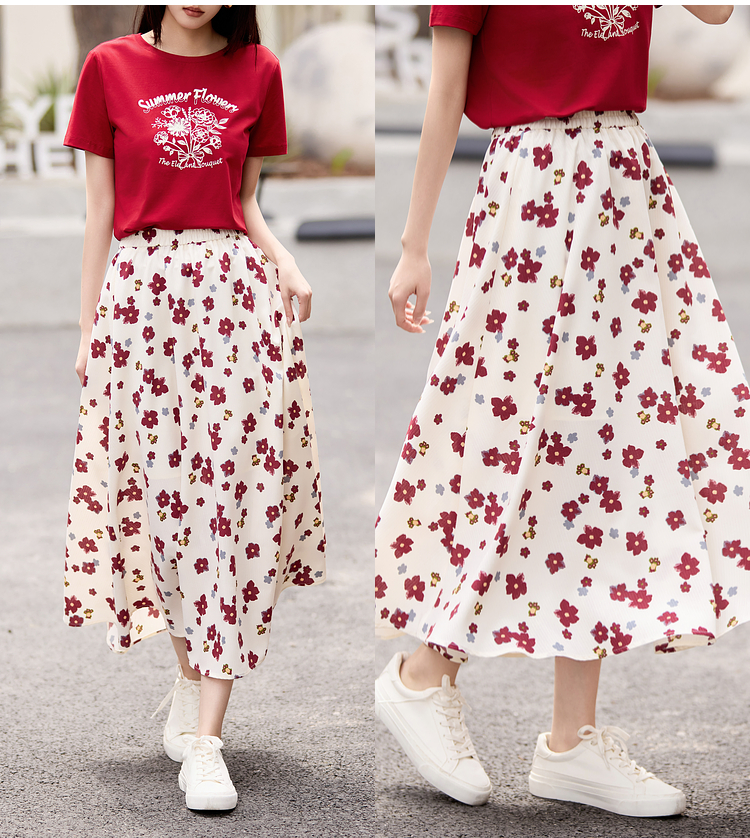 【专属特价】【小红花】熙世界碎花a字半身裙女夏季高级感优雅气质中长款伞裙