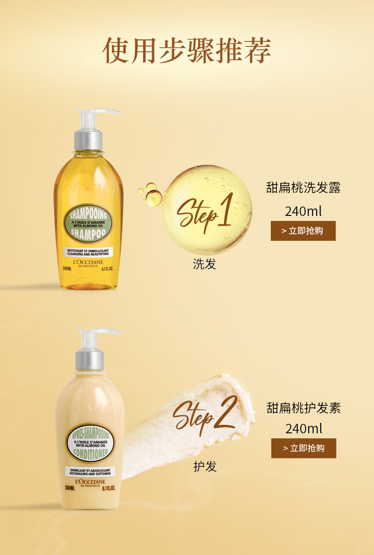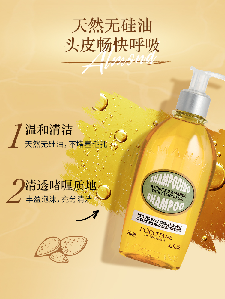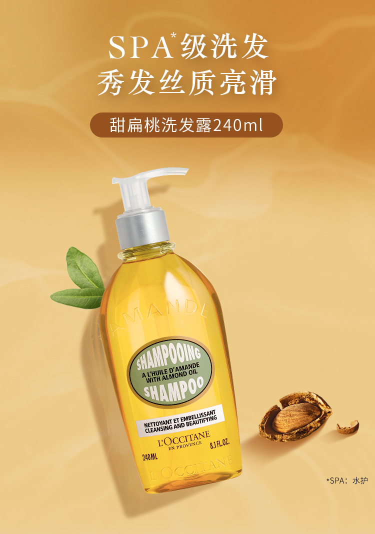 欧舒丹洗发水 甜扁桃洗发露240ml清洁柔顺改善毛躁女正品官方品牌JPY带授权招加盟代理