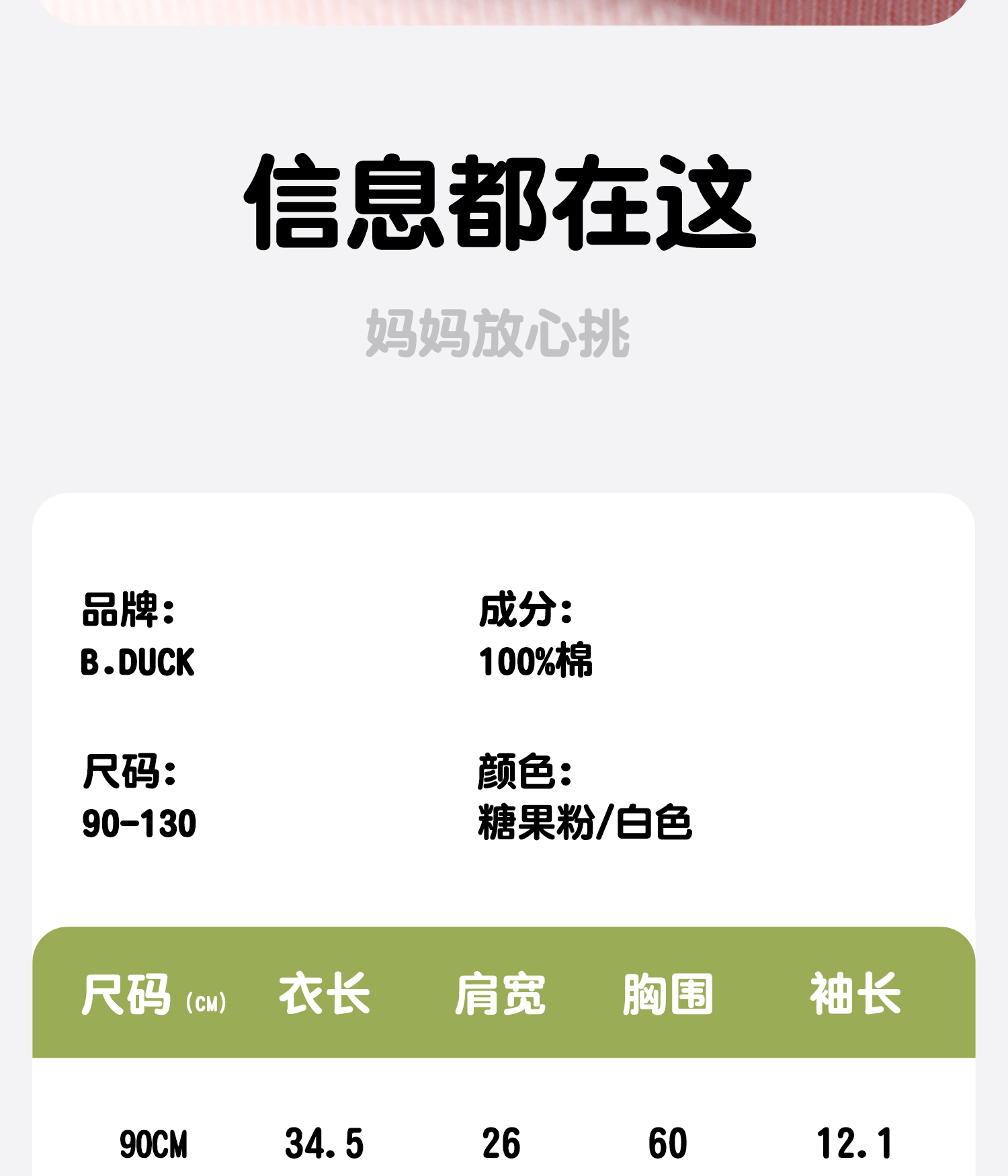 B.Duck小黄鸭童装夏季短袖T恤90-130 FF2601020