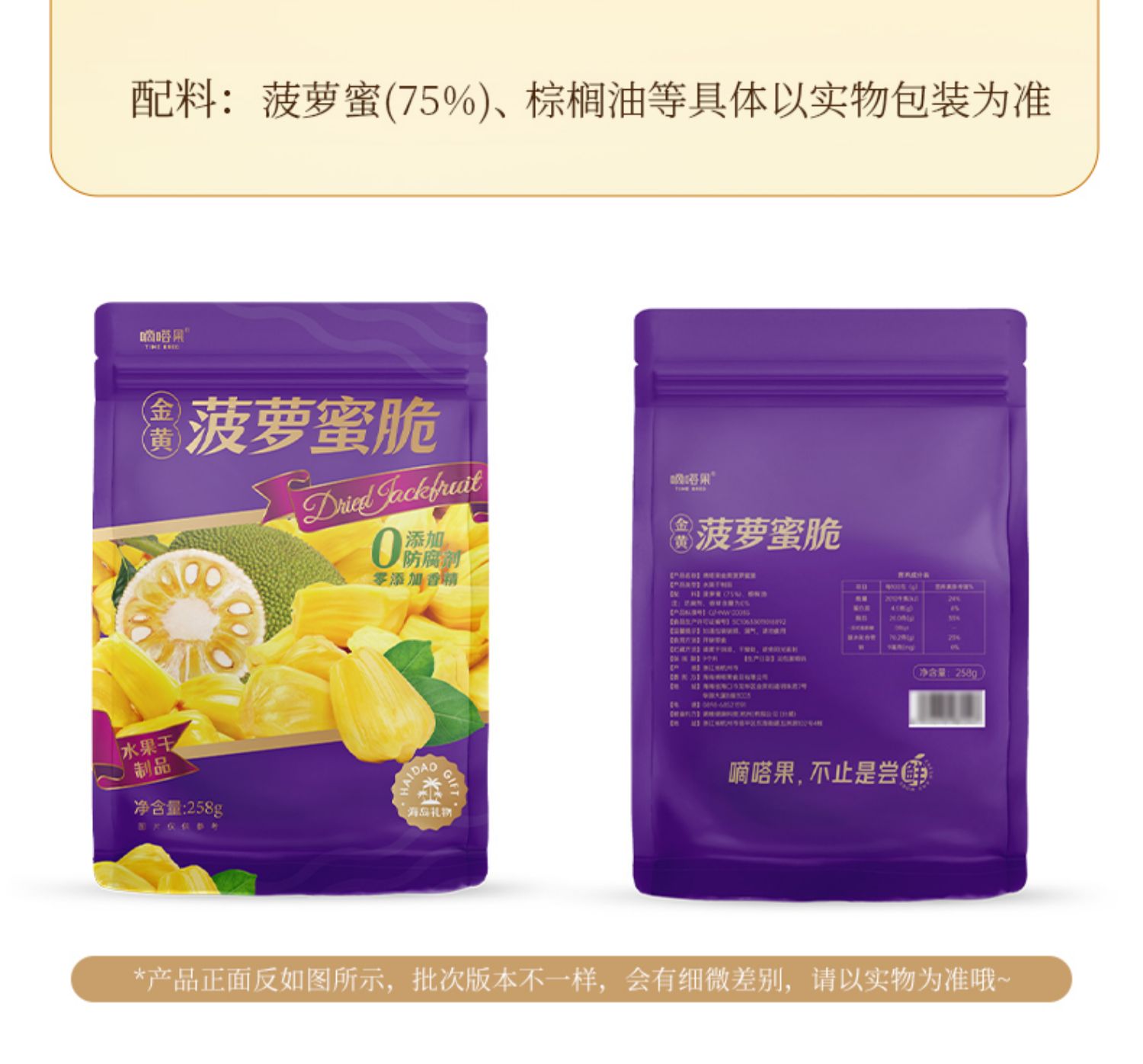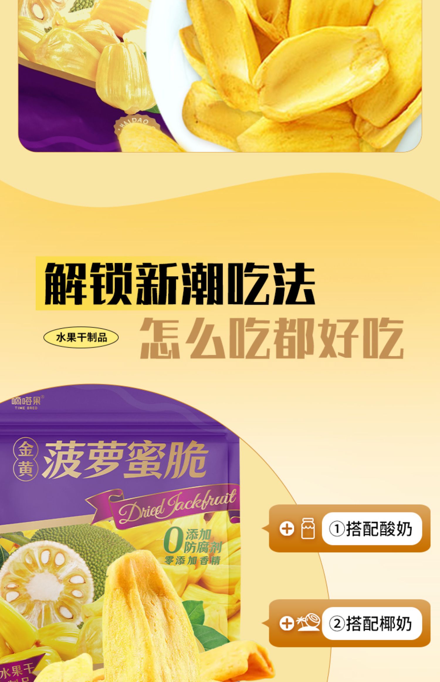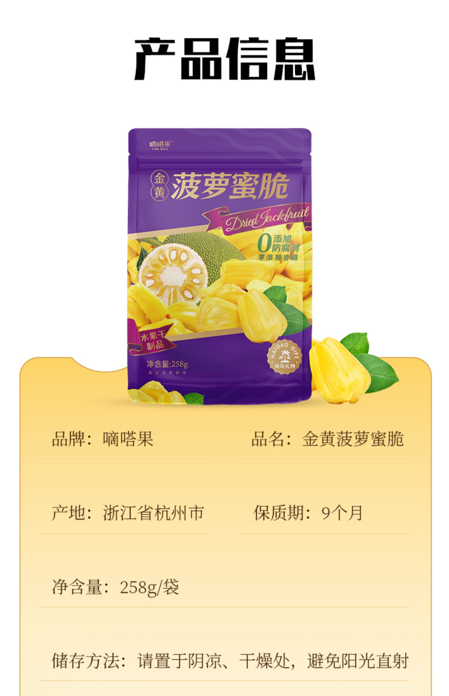嘀嗒果金黄菠萝蜜脆干258g 保留鲜果风味🉑️️搭配酸奶/椰奶/麦片 片片厚实 甜脆可口!