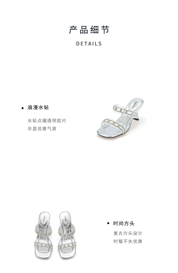 westory春季新款满钻中跟系带法式气质凉鞋真皮W24BJ61851