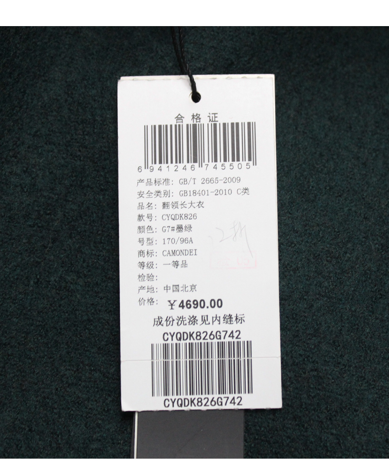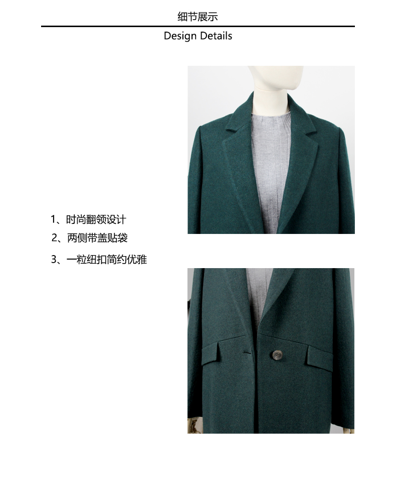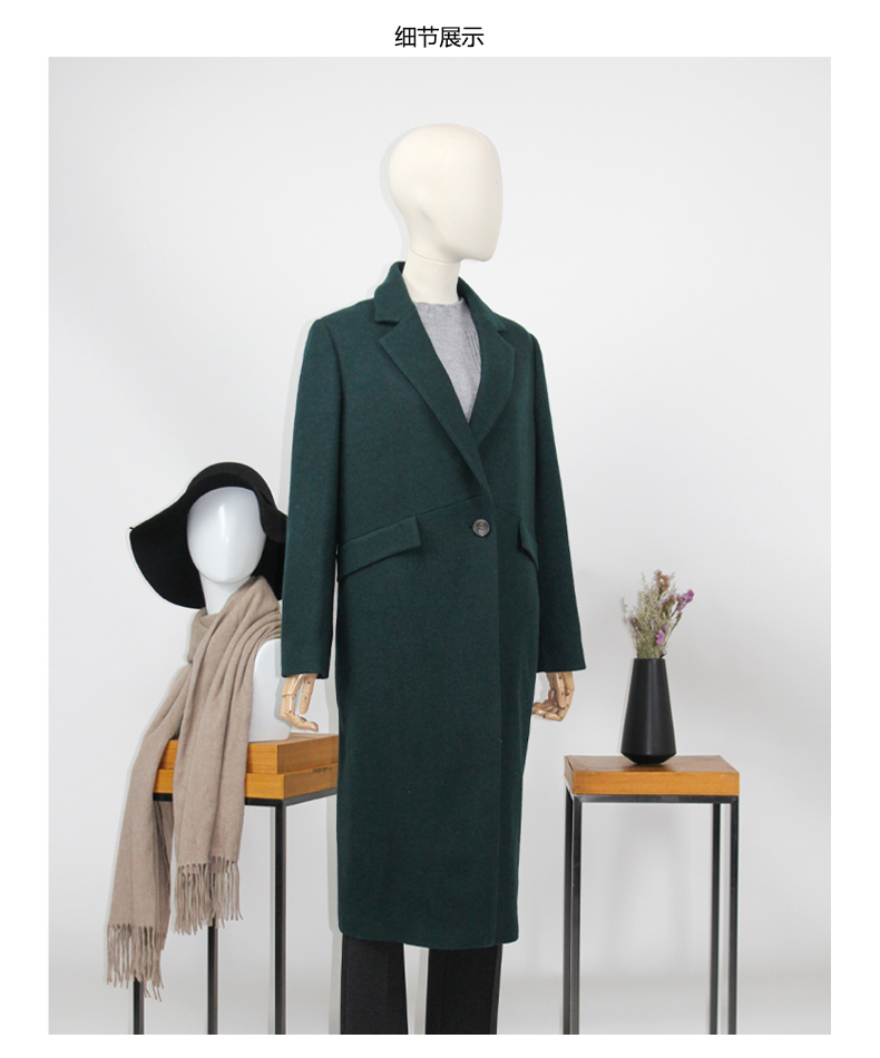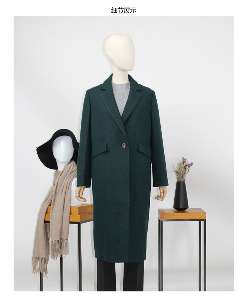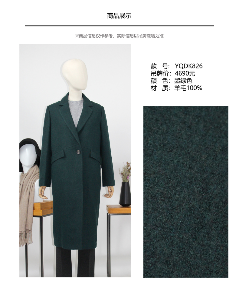FOCALS福柯斯冬季新款休闲长款纯色羊毛大衣外套FYQDK826G7