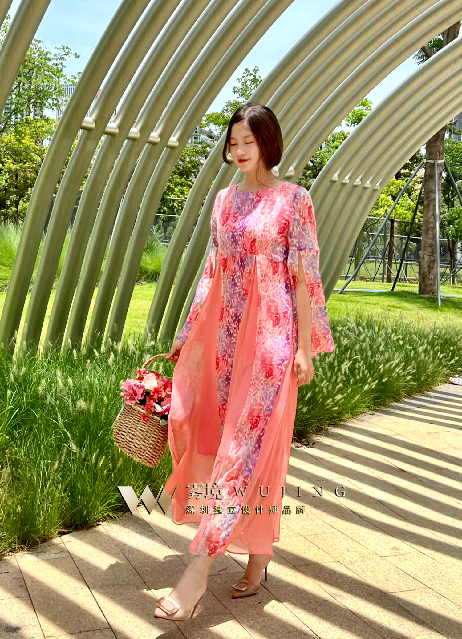 【雾境定制款】粉黛嫣红度假风系列超遮肉不挑人版型下摆多层次拼接飘逸十足 22021221
