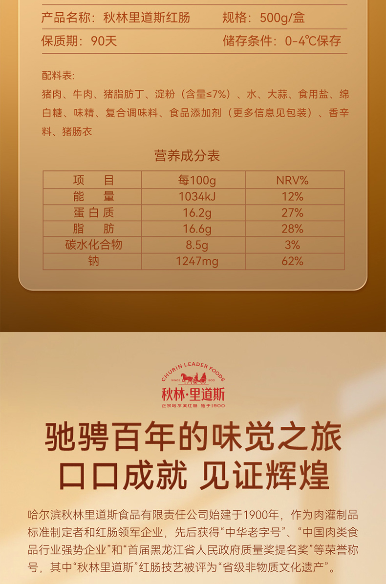 秋林里道斯 哈尔滨红肠缤纷礼盒东北特产送礼(红袋500g*1+儿袋400g*1+干袋250g*1+俄式600g*1)
