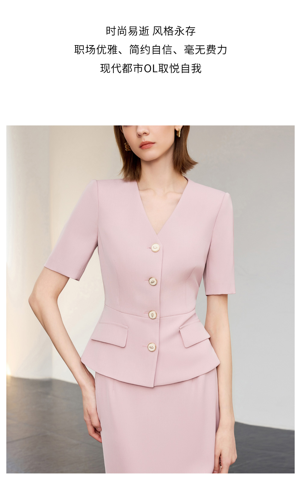 IWY/夏天薄款小西装套装女新款粉色职业装气质女神范高端两件套CS2290