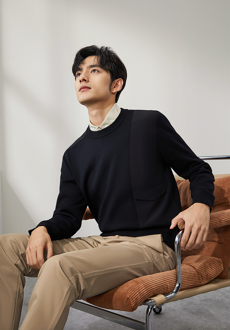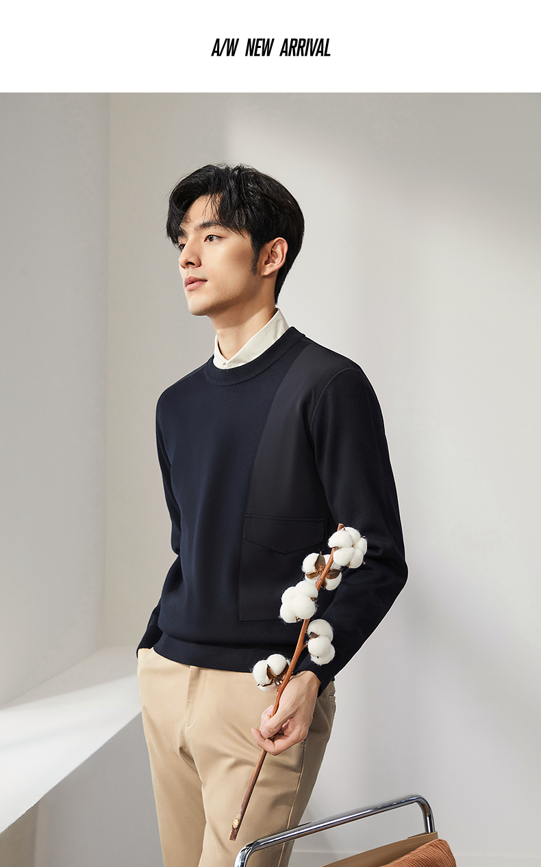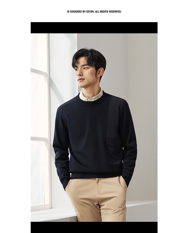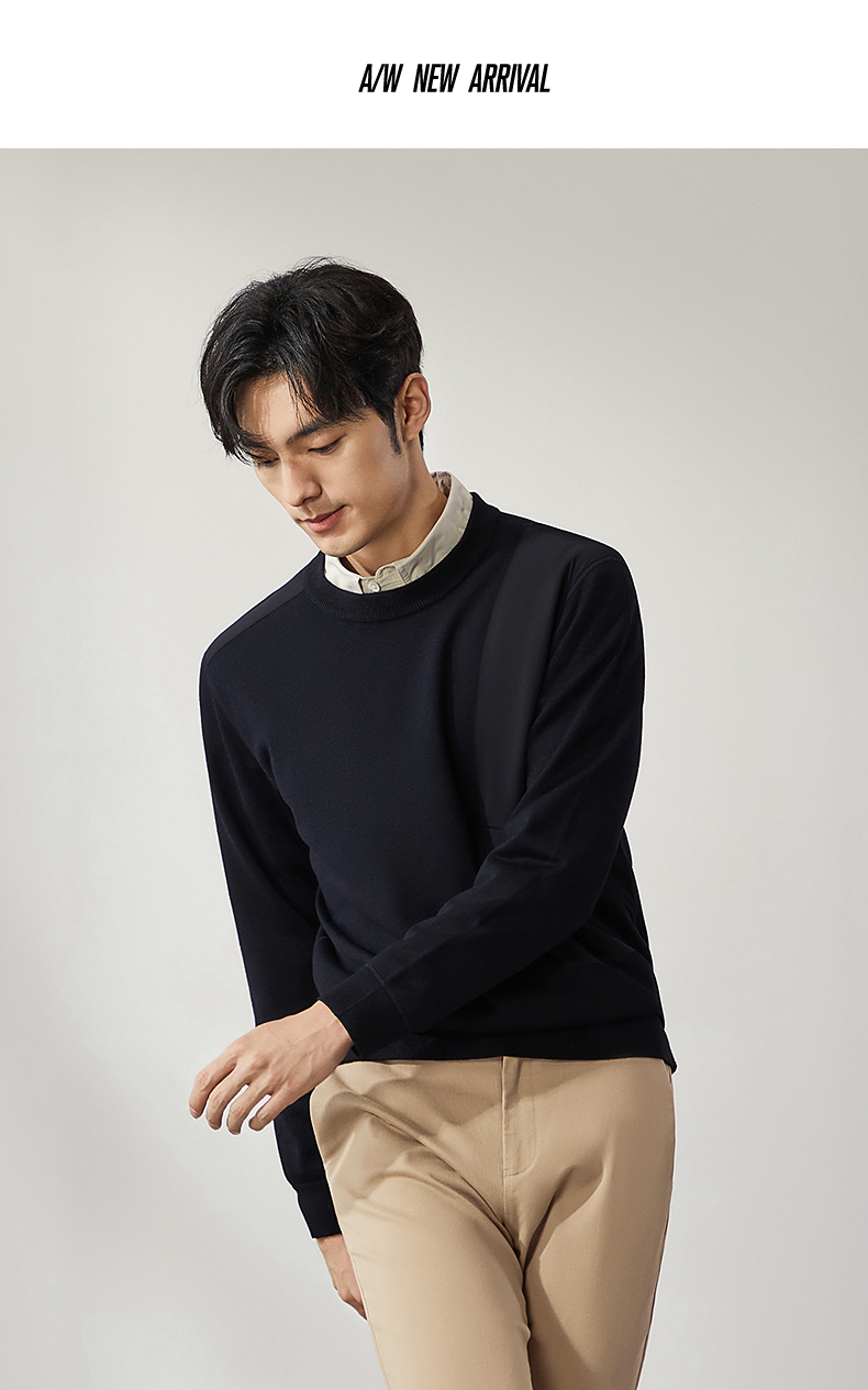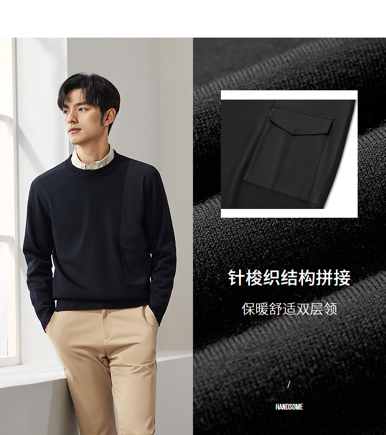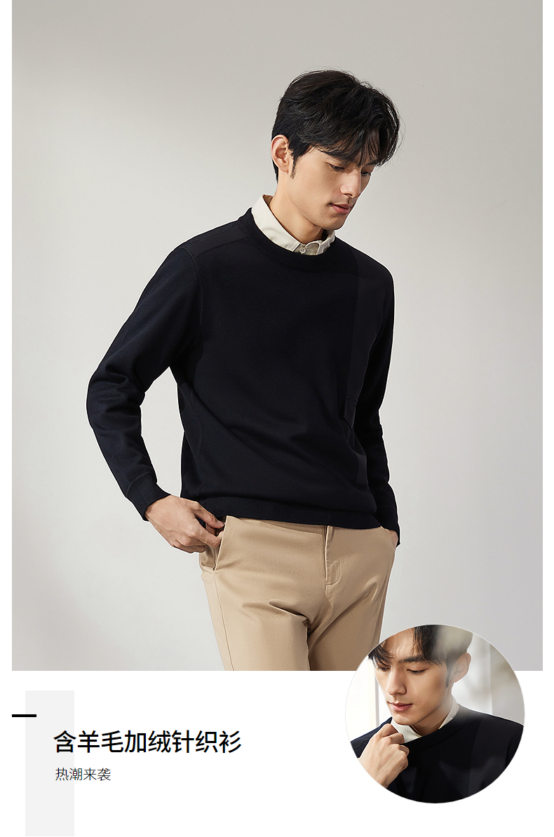 【加绒拼接】柒牌男士针织衫秋冬新品时尚休闲中青年厚款圆领毛衫 127Y70760