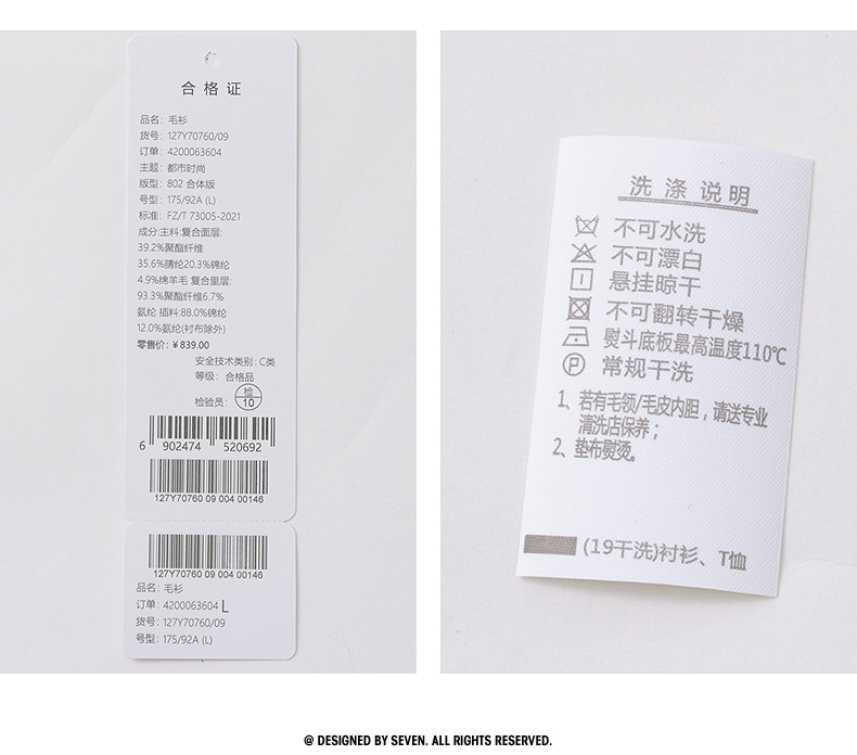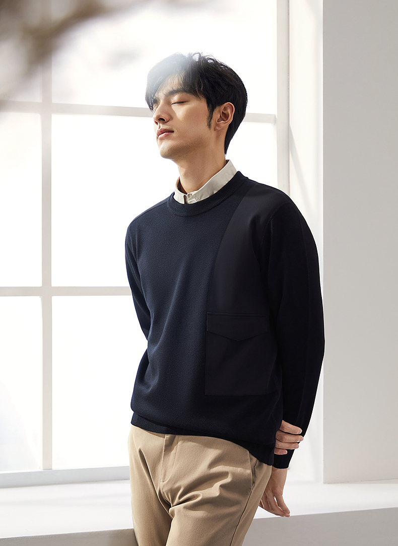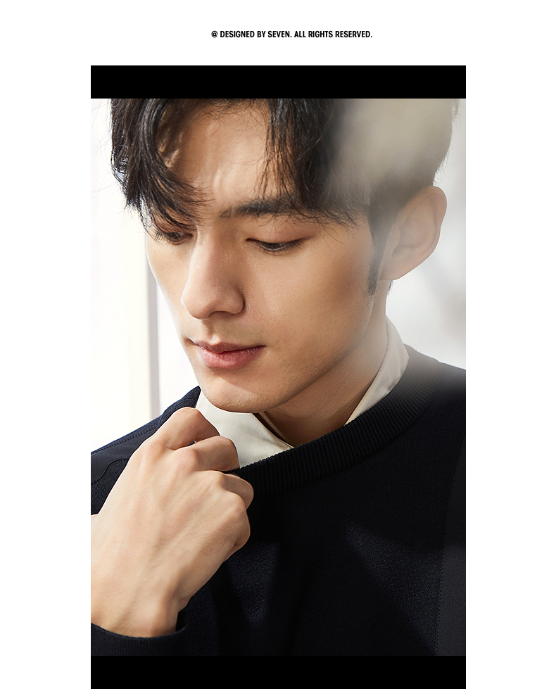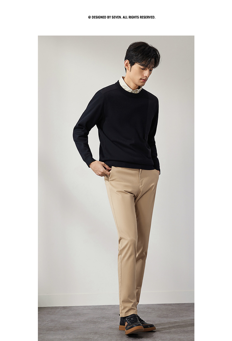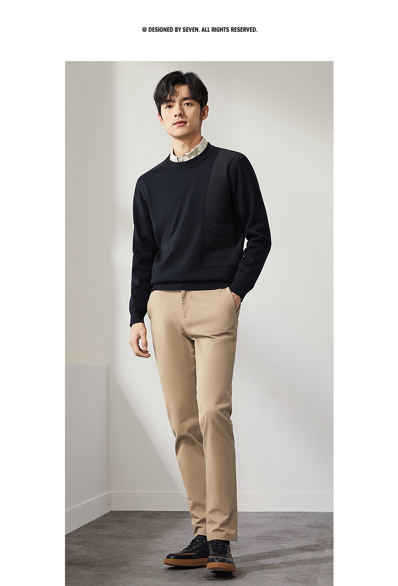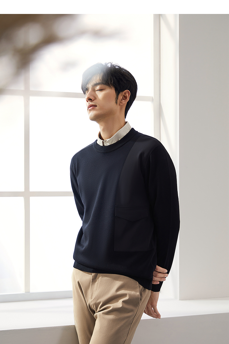 【加绒拼接】柒牌男士针织衫秋冬新品时尚休闲中青年厚款圆领毛衫 127Y70760
