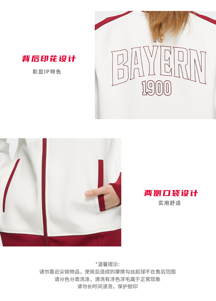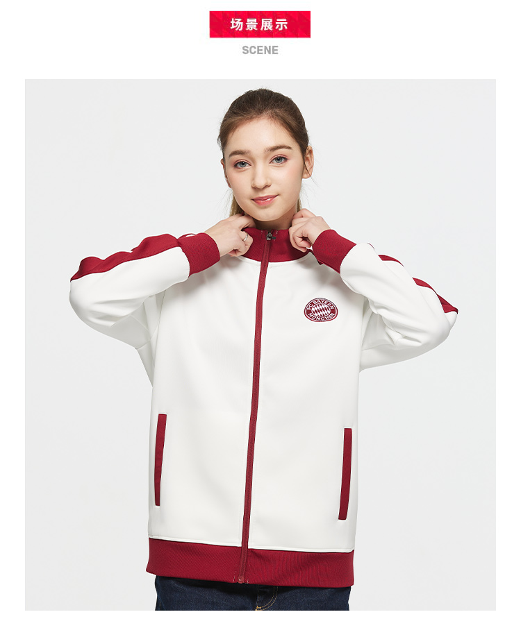 【官方正版】拜仁慕尼黑足球俱乐部|白色拉链外套足球迷运动夹克
