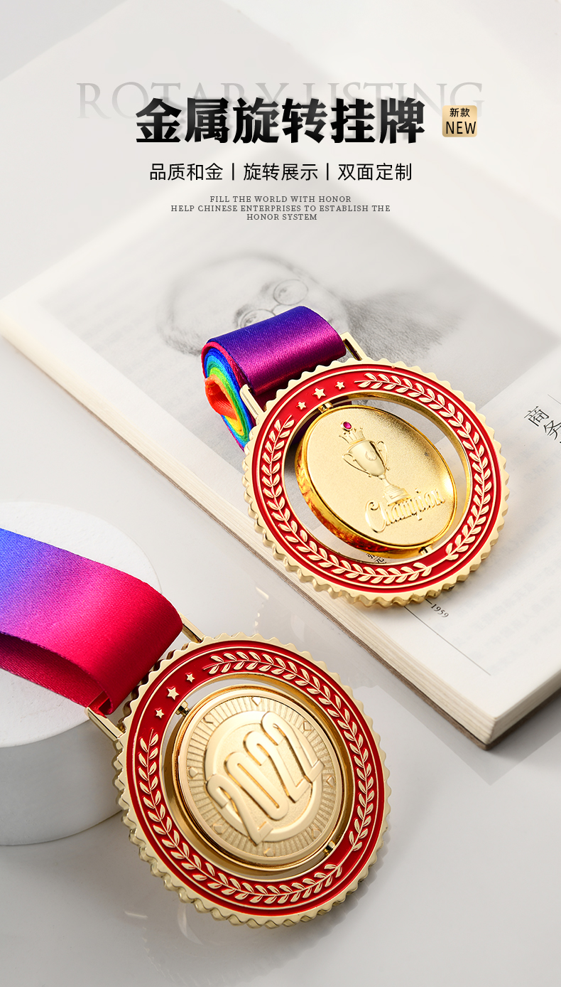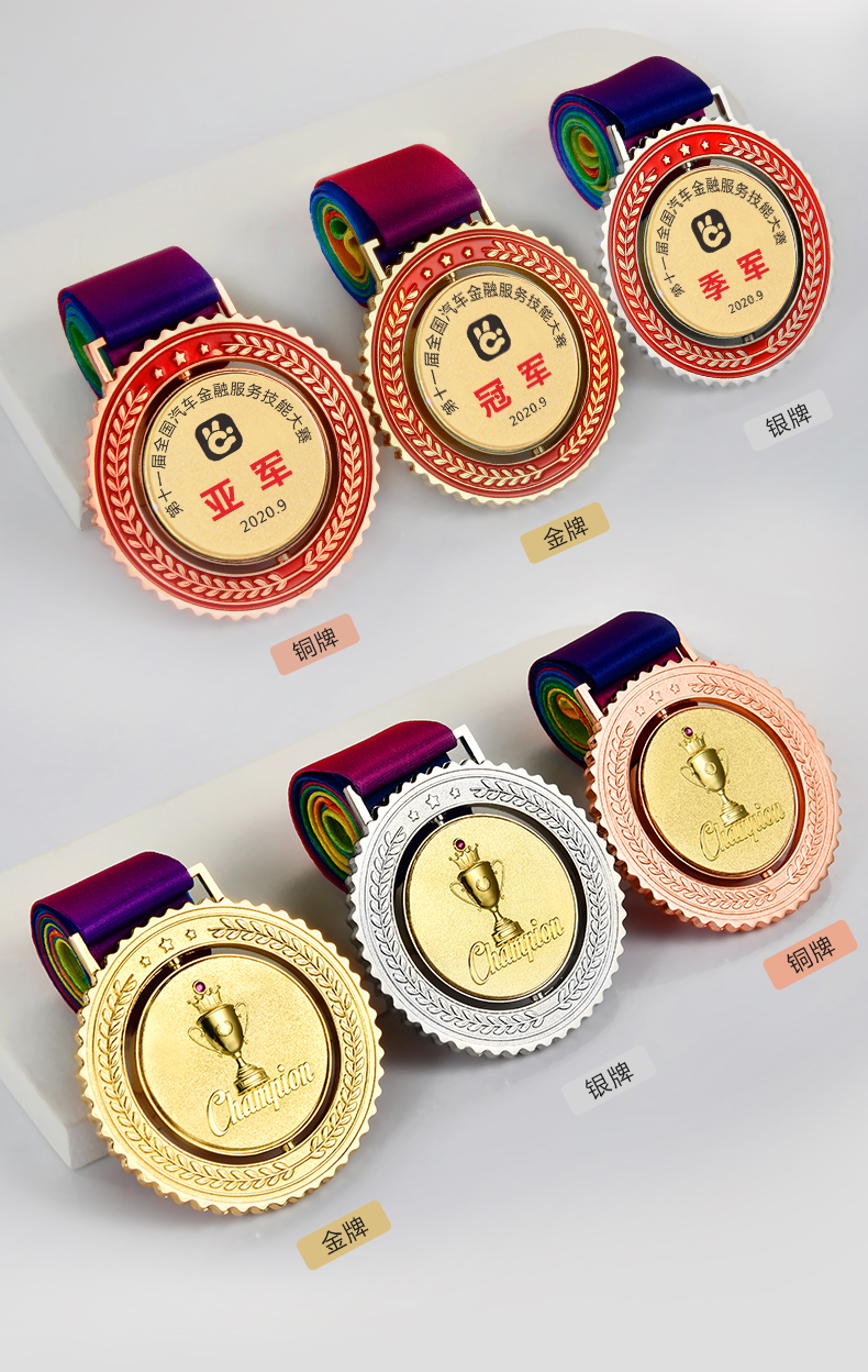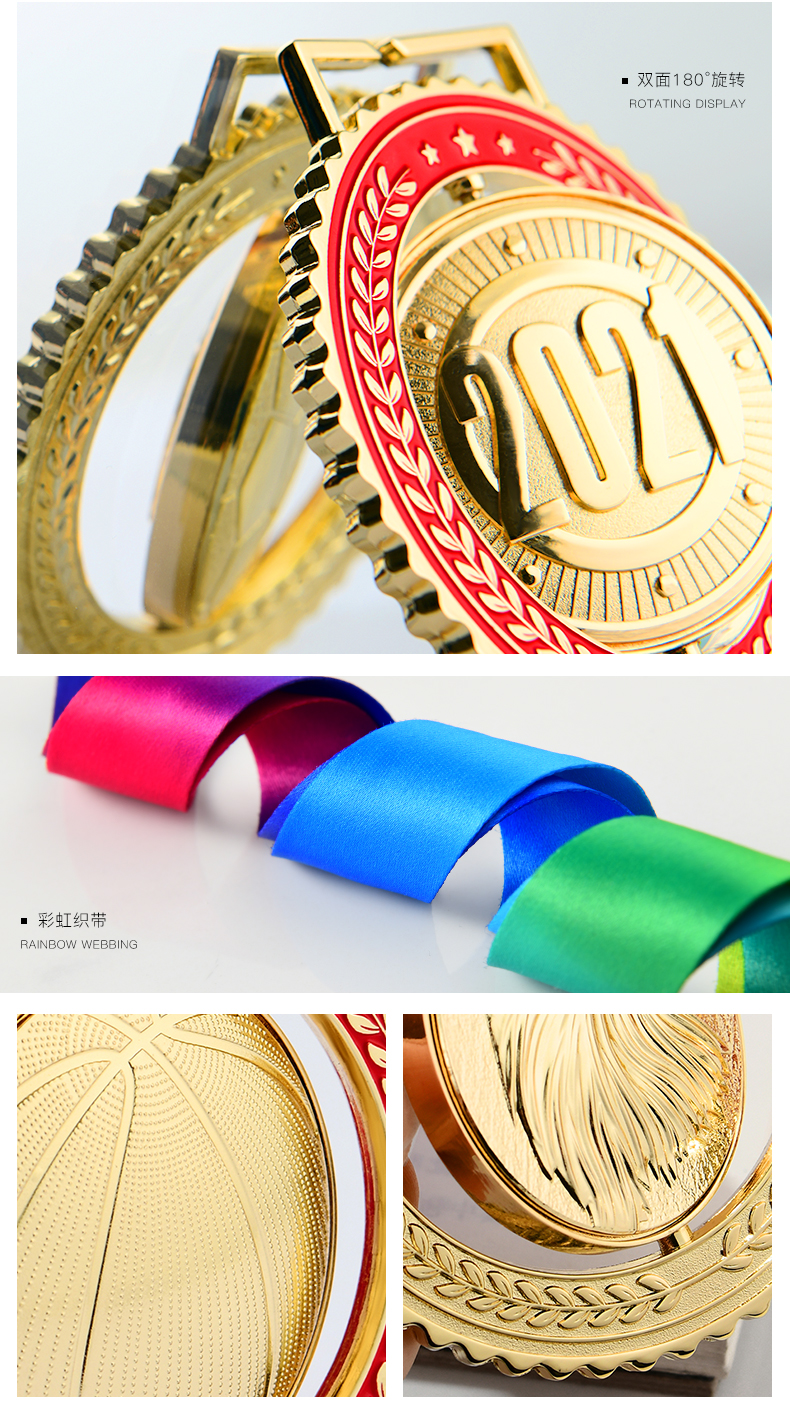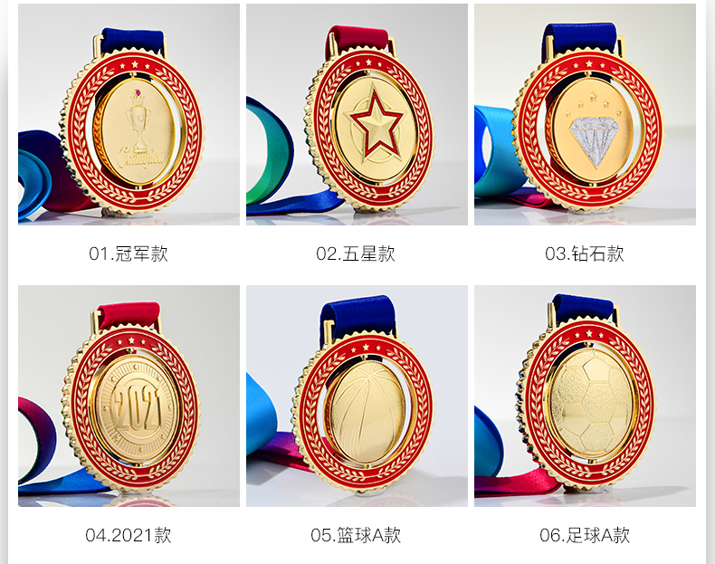 金属奖牌定制蓝球冠军挂牌2022儿童马拉松比赛奖章五角星勋章定做