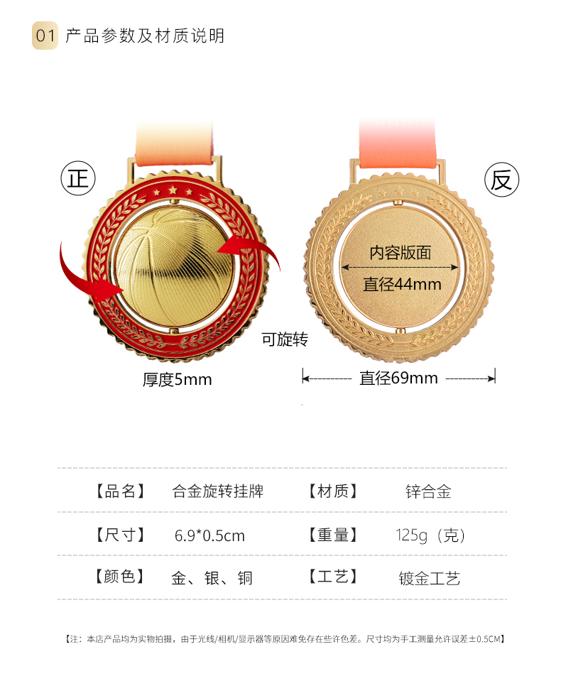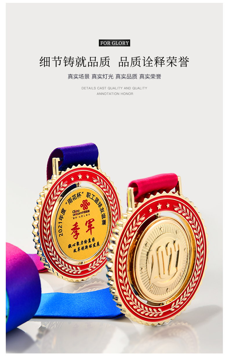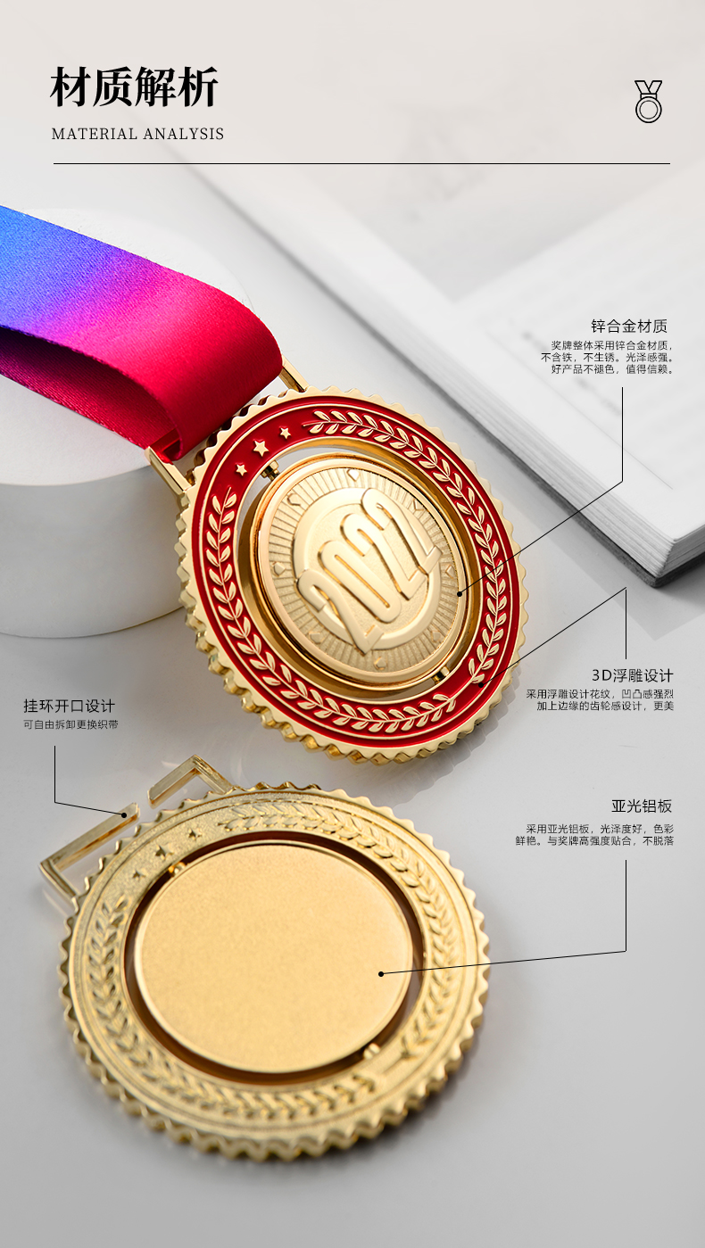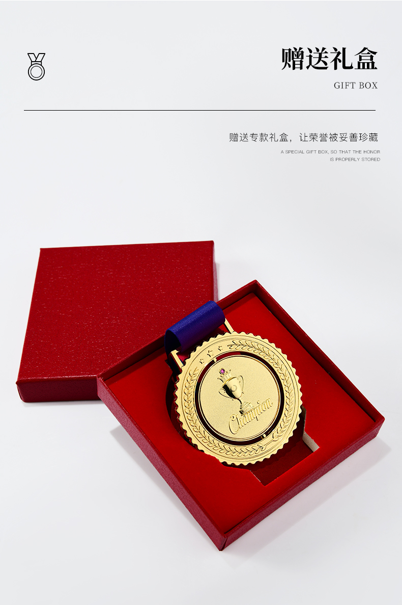 金属奖牌定制蓝球冠军挂牌2022儿童马拉松比赛奖章五角星勋章定做