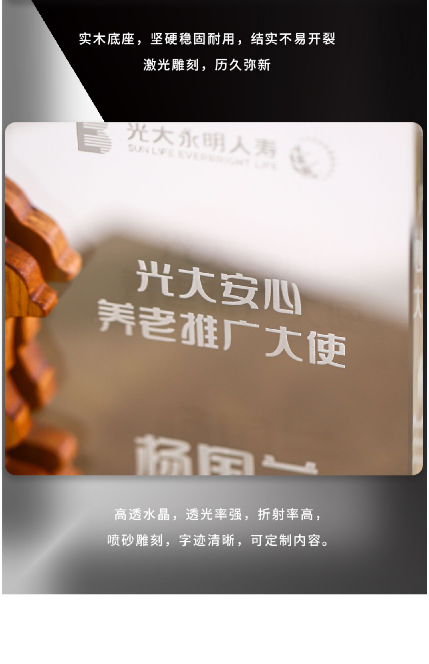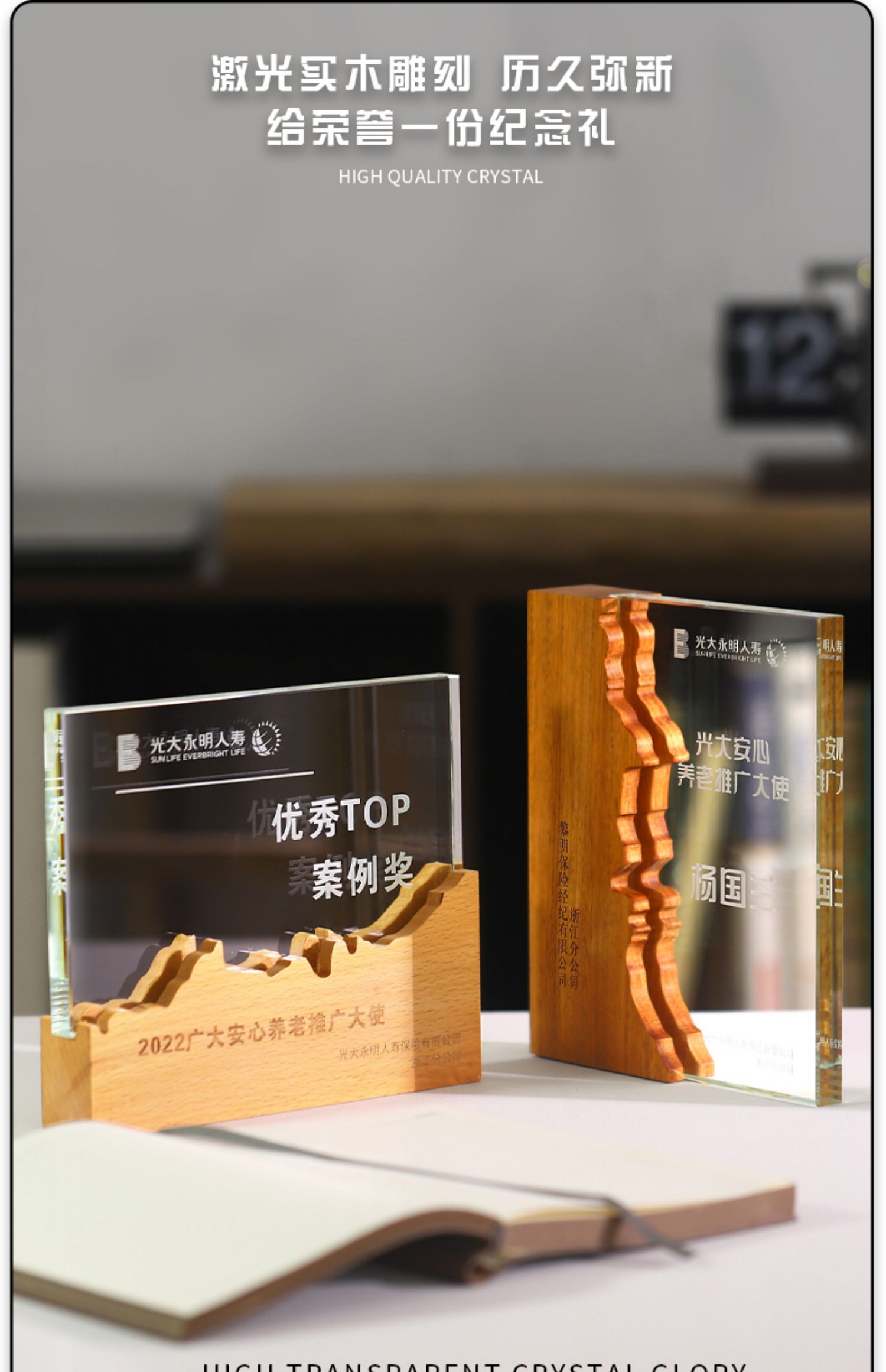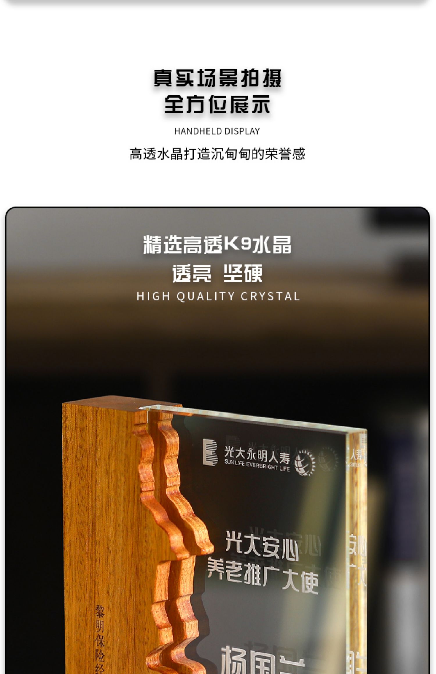 实木水晶奖杯奖牌定制定做创意授权牌抗疫纪念品表彰加盟牌