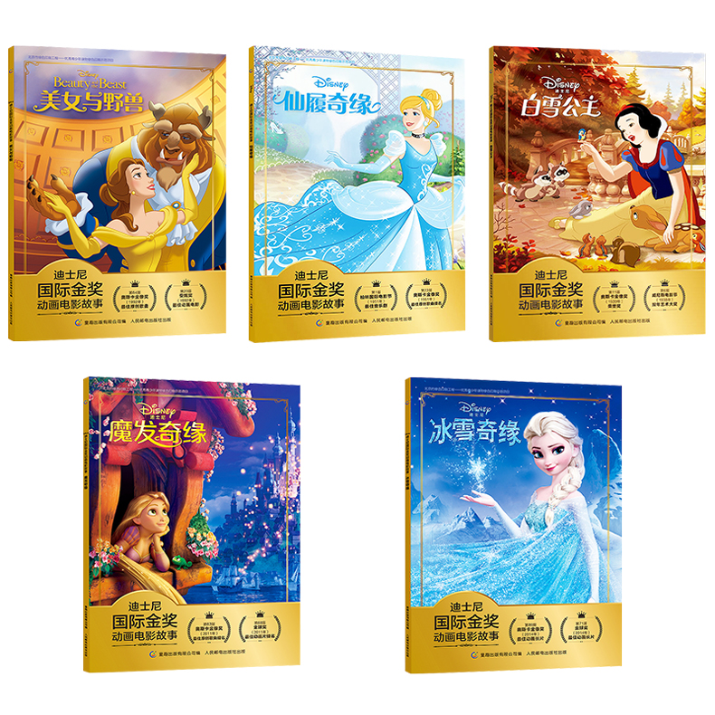 全套5册 迪士尼国际金奖动画电影故事注音版 冰雪奇缘白雪公主 4-5-6-7岁书籍儿童读物益智绘本阅读 幼儿园中班大班带拼音仙履魔发