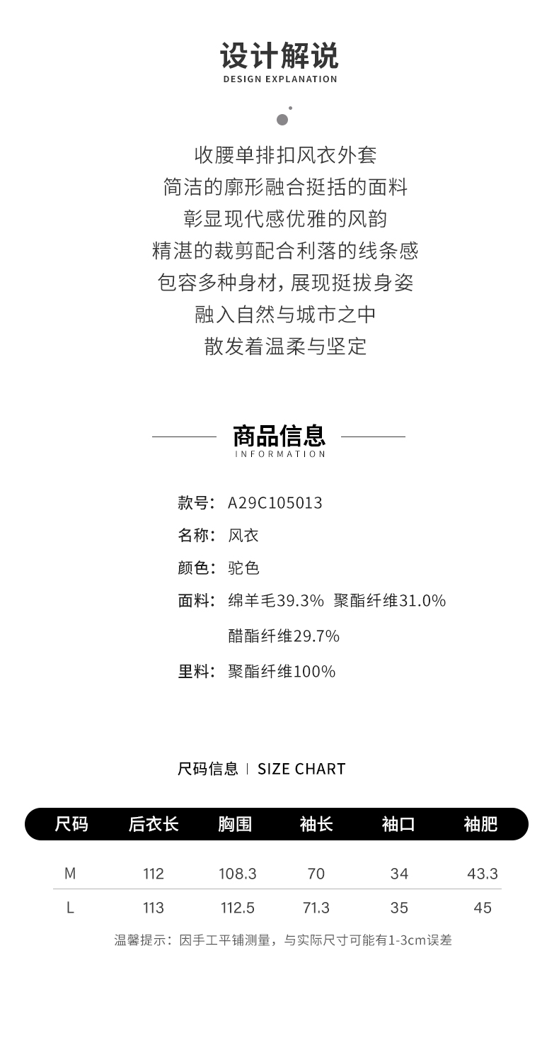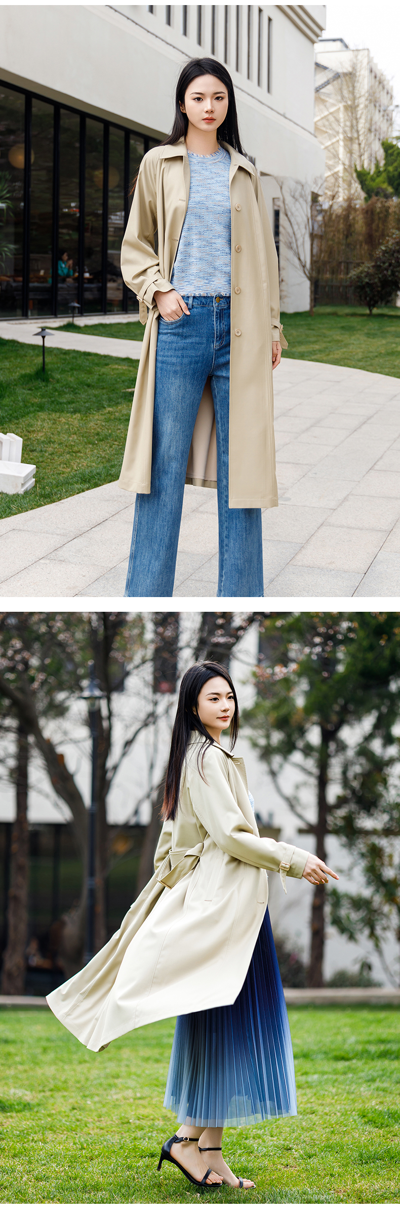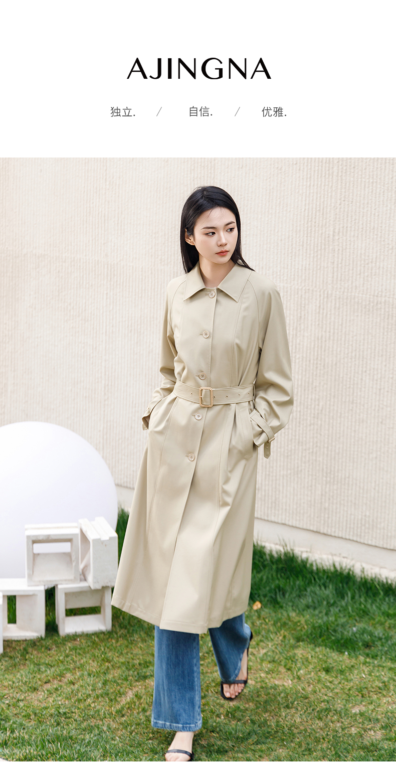 【商场同款】阿菁娜2024春季新款收腰单排扣风衣外套A29C105013
