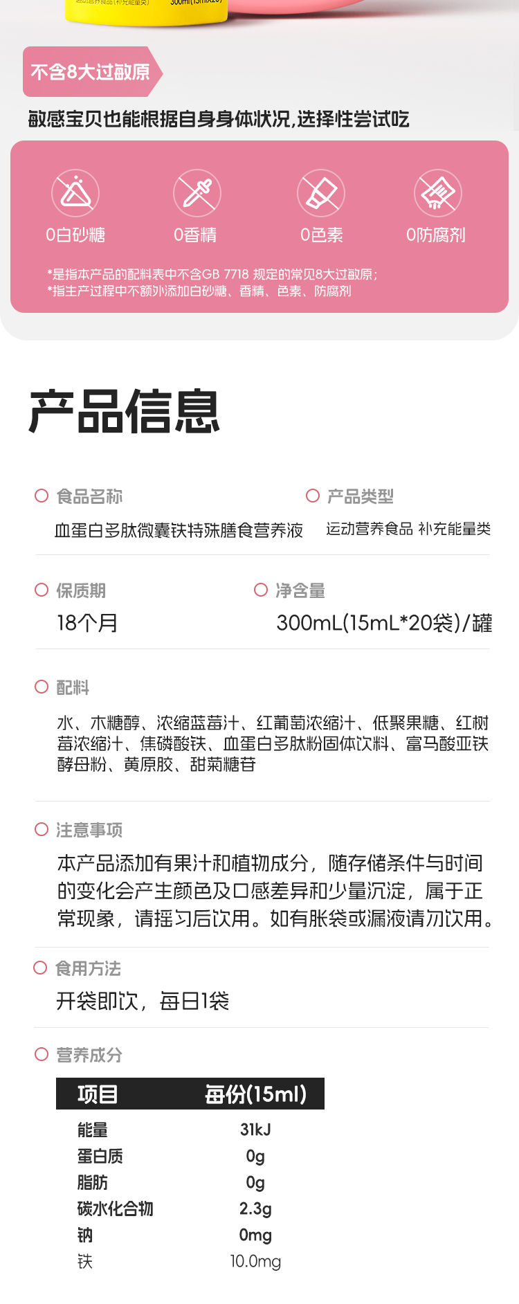 【产品名称】:KIKI 血蛋白多肽微囊铁特殊膳食营养液/300ml