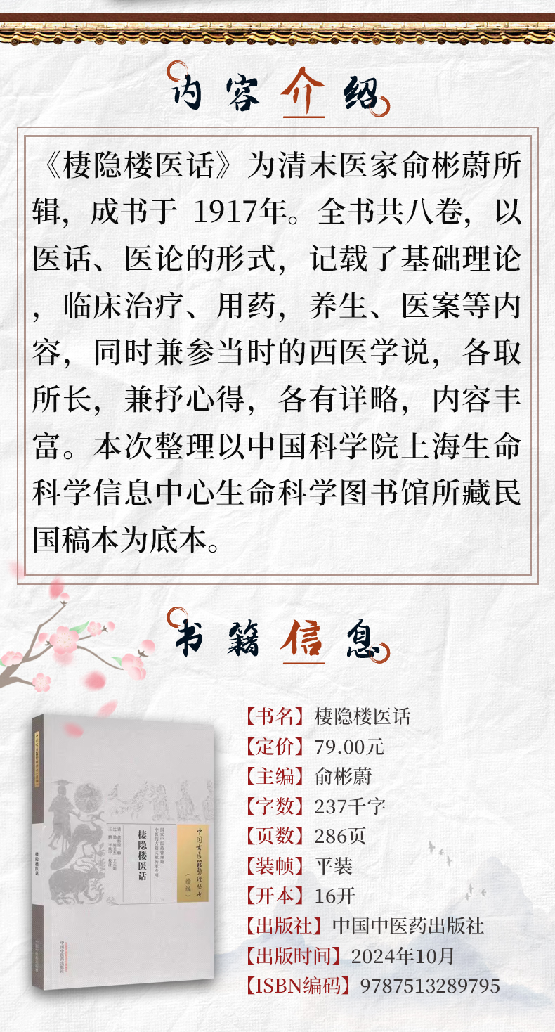 棲隐楼医话 中国古医籍整理丛书 续编 俞彬蔚辑 中医药管理局中医药古籍文献传承专项 9787513289795中国中医药出版社